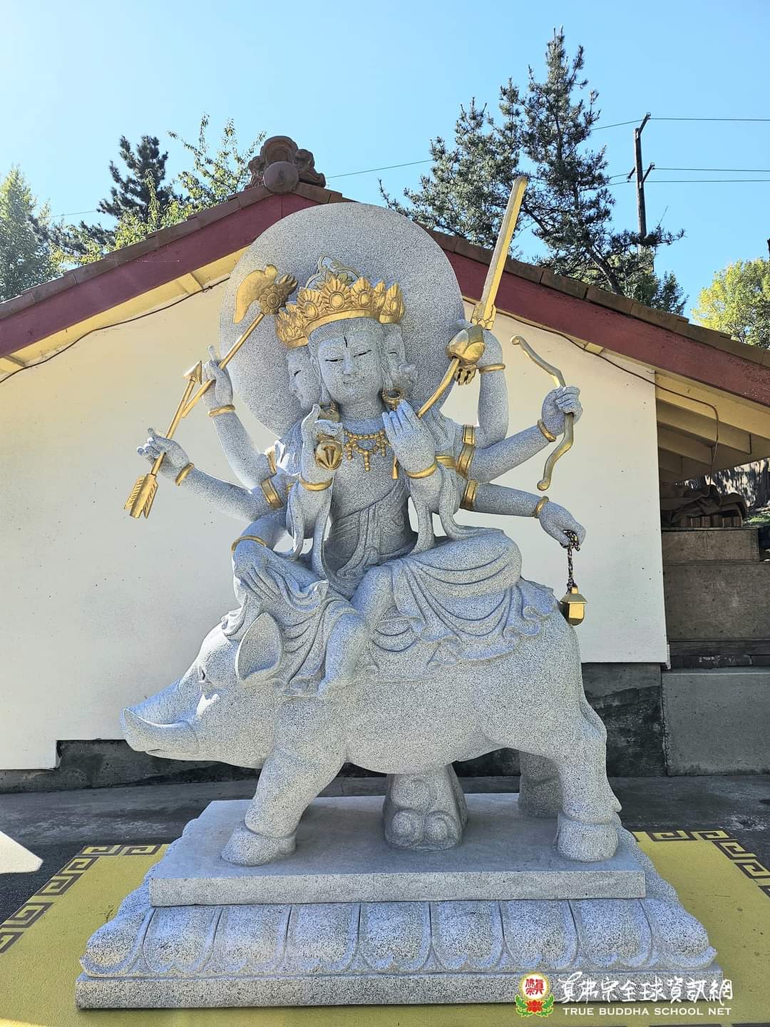 屹立在西雅圖雷藏寺後方的石雕佛像有:高王觀世音菩薩、愛染明王尊者、摩利支天菩薩、大力金剛及紅財神,並有真佛傳承海會巨大壁畫。