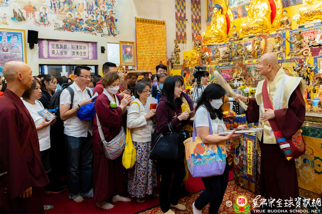 開示結束後,聖尊為大眾做珍貴殊勝的加持,並為大眾簽書,人人內心法喜洋溢,圓滿結束了此次的同修!