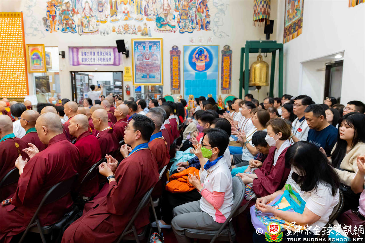 2023年9月16日,美國西雅圖雷藏寺延續著上星期秋季大法會的盛況,人潮洶湧,寺裡寺外坐滿了來自世界各國的弘法人員與善信大德,嘉賓Sun Burford女士也前來參與盛會,她熱心公益,目前擔任華大東亞圖書館之友聯席主席、Newcastle City藝術委員會董事、華州語言教師會董事,並正競選Newcastle市議員。大眾聚精會神的跟隨著聖尊蓮生活佛盧勝彥修持大白蓮花童子本尊法。