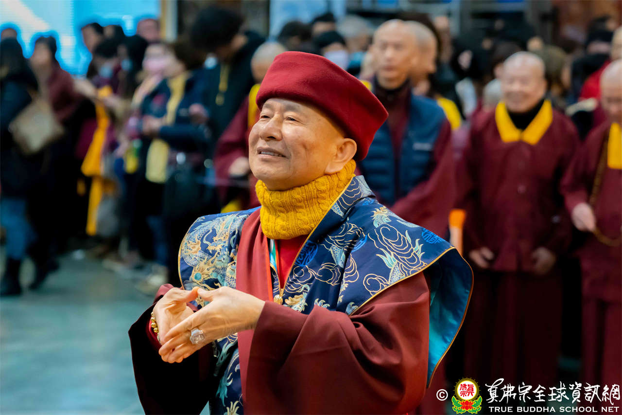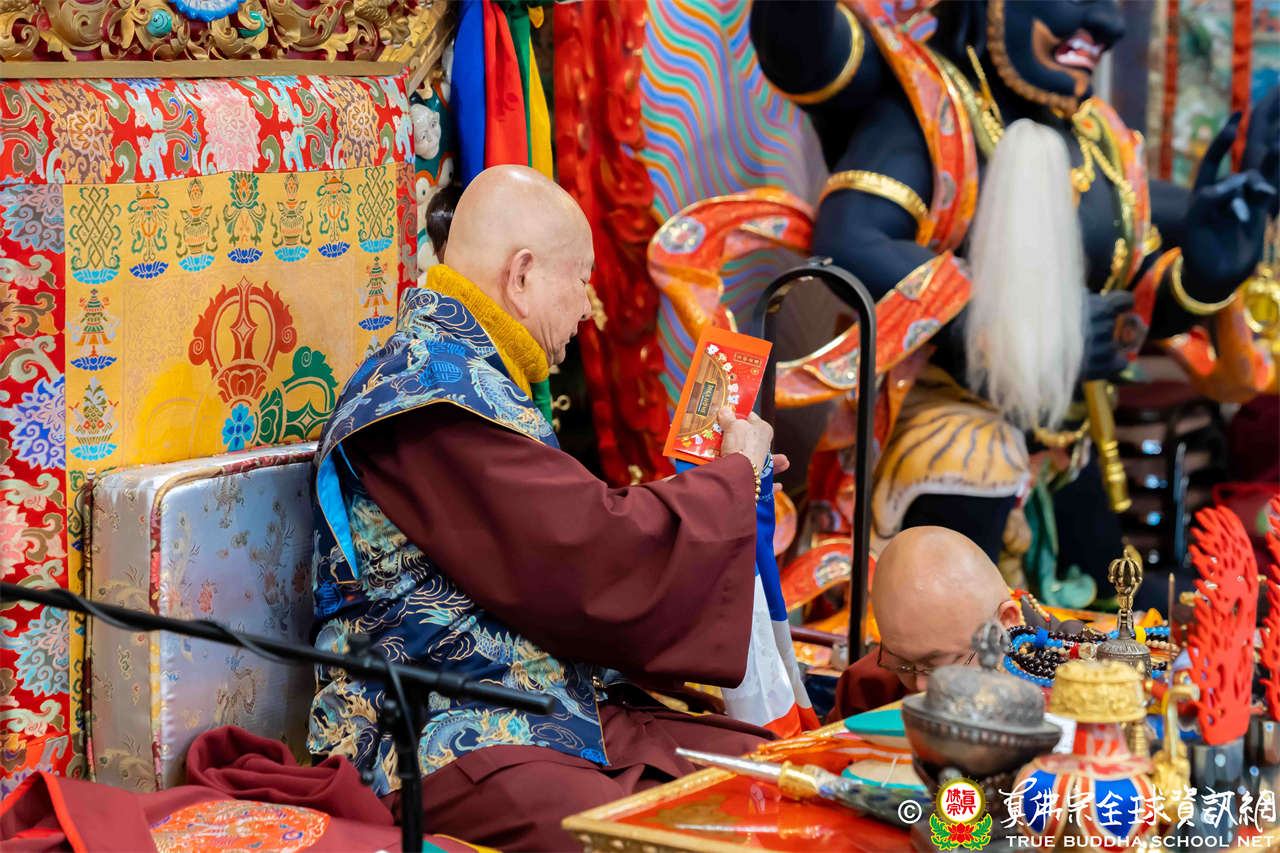 法王開示至此,護摩法會圓滿結束。接著,法王與線上的弟子打招呼,並爲現場出席者賜授五色不動明王法灌頂。