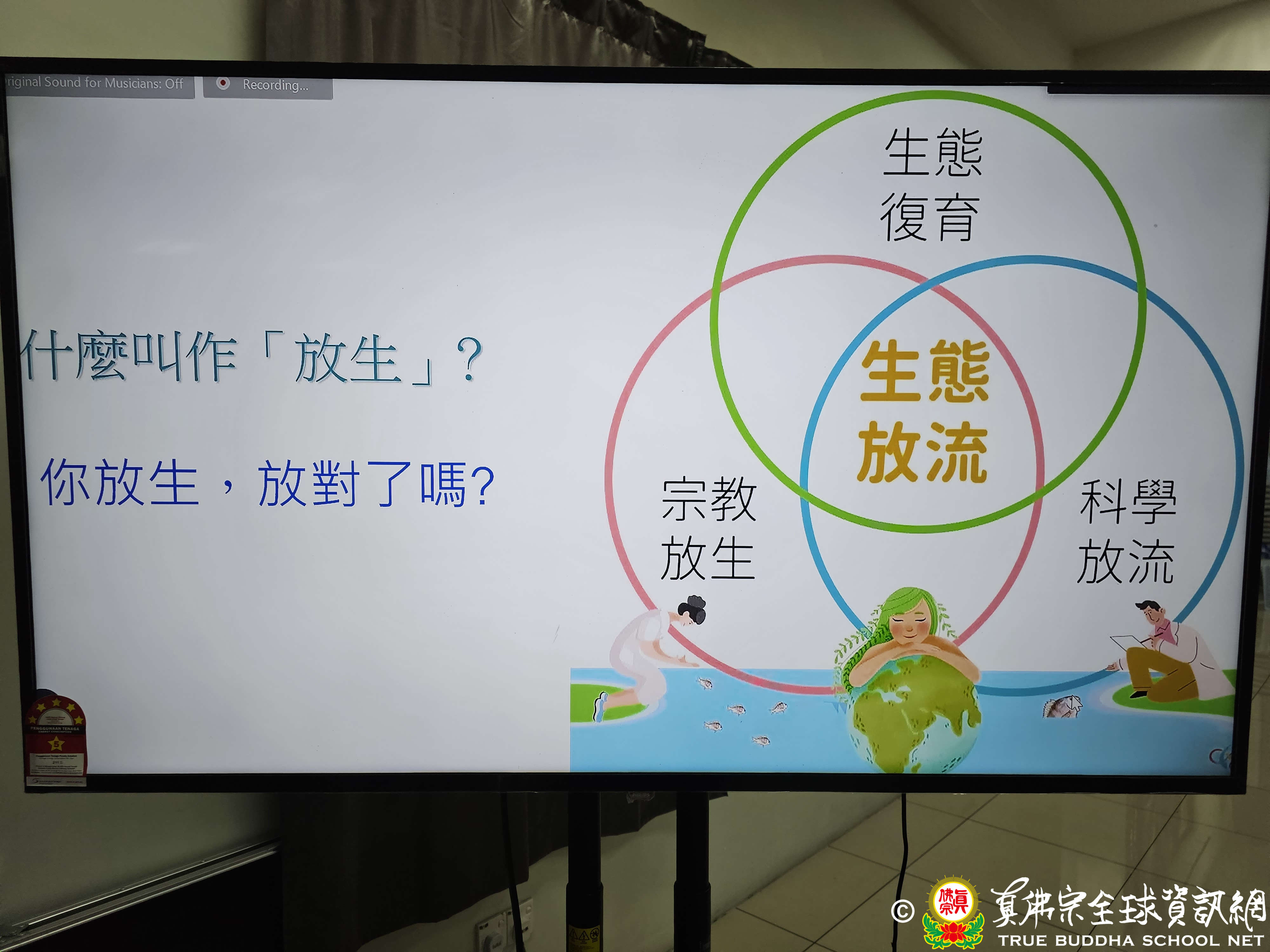 在馬來西亞真佛宗的寺堂會,「放生」是一個很受歡迎的活動,甚至非真佛弟子都會不時詢問「幾時有放生?」通過這次的學習,使我更加深刻感受到「放生物的選擇」的重要性。從「佛學常見詞匯」陳義孝編,對於「放生」的解釋是「釋放被羈禁的生物。」所以在現代的放生活動,是否觀念已經有所偏差?師尊文集第135冊《揭開大輪迴》之〈天賜有孕符〉寫到『一般人做善事,先存做善事的念頭,再到菜市場搜購生物放生。』,於是為了放生而放生,多為購買生物苗或在寵物店購買或訂購生物來放生,是否符合放生的真正意義?值得深思。