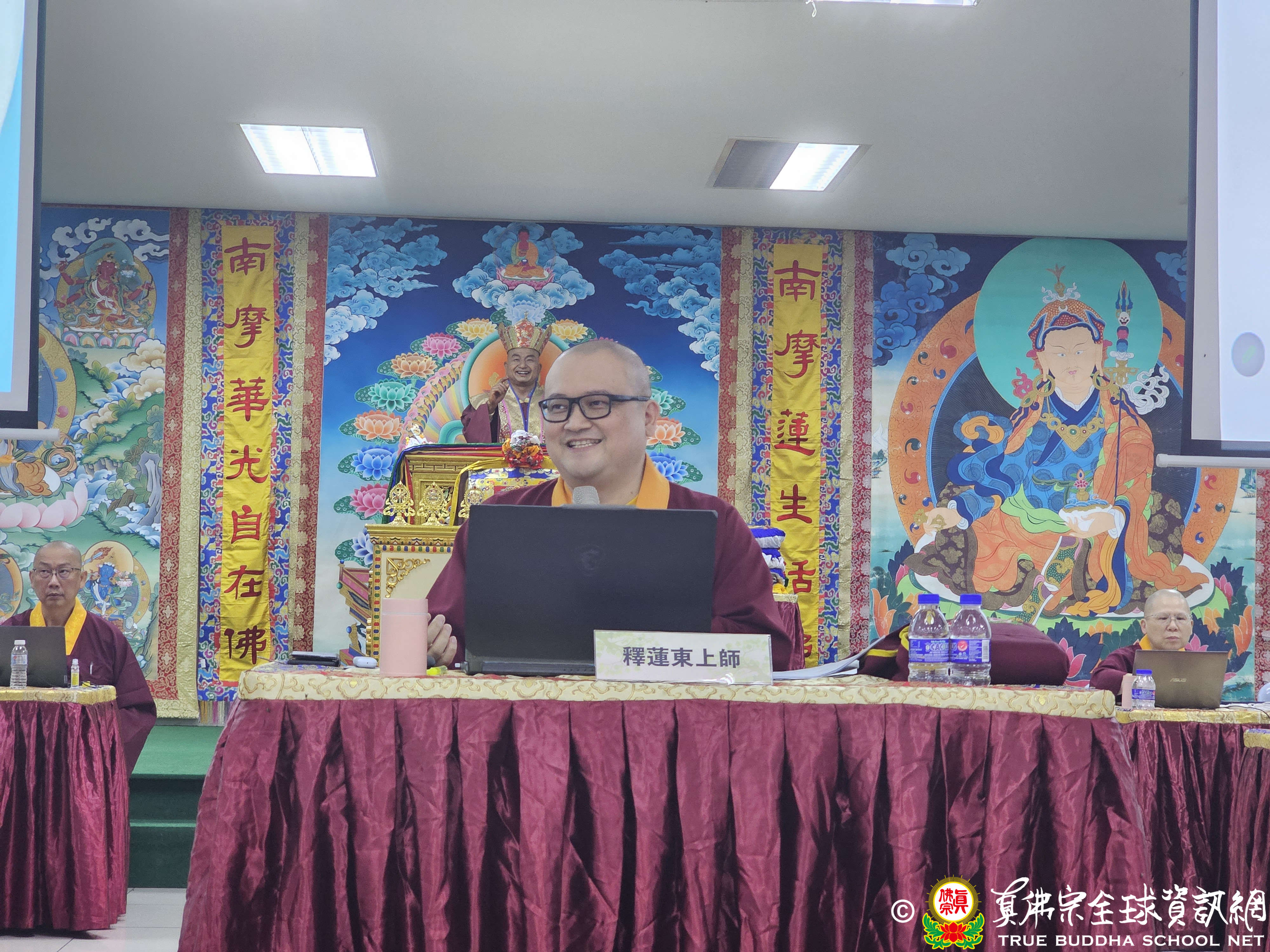在隆重的供僧大會、釋迦牟尼佛護摩法會後,繼續進行教育實體課程,本堂課主題為《放生應有的正確觀念及做法》,由法務處處長釋蓮東上師主講。除了講解「何謂放生?」課中更交替引用師尊文集內容做引證,讓學員更一步瞭解「戒殺、放生、護生」。