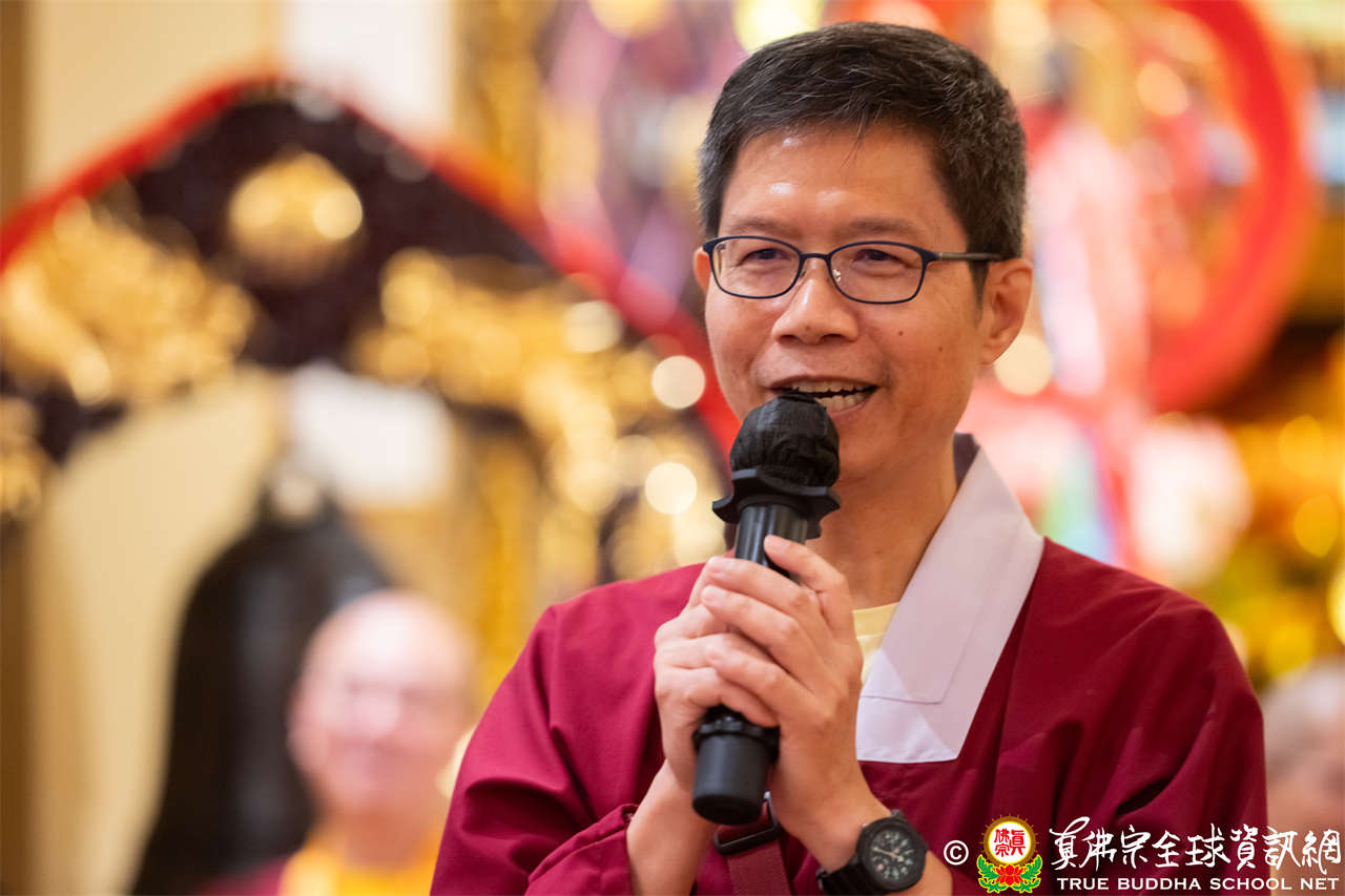 響應宗委會的號召,特別在交流會開始前,由淵聲助教帶領簡易修法及念佛號回向給敬愛的師尊、師母。接著在真佛宗宗歌「感恩真佛」的歌聲後,由會長致開幕詞,交流會正式開始。