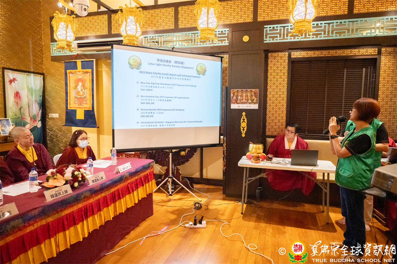 2023年11月6日晚上7:30分,宗委會第六屆核心小組與新加坡首次的實體交流會。假座獅城雷藏寺三樓密壇召開,出席人員核心小組:會長蓮花程祖上師、督察處處長長老釋蓮僧上師、法務處處長釋蓮東上師、教育處處長釋蓮訶上師、文宣處處長釋蓮悅上師、公關處處長釋蓮伽上師、財政處處長釋蓮者上師。以及吐登卡瑪仁波切、蓮萊上師、蓮簡上師、教授師1位,法師5位,講師1位,助教5位。道場代表:圓學堂4位,圓證堂3位,雷藏寺(新加坡)6位,獅城雷藏寺10位。華光功德會(新加坡)9位,青年團4位以及宗委會行政秘書團隊,總共有60位齊聚一堂,對於真佛宗在新加坡的發展進行討論。