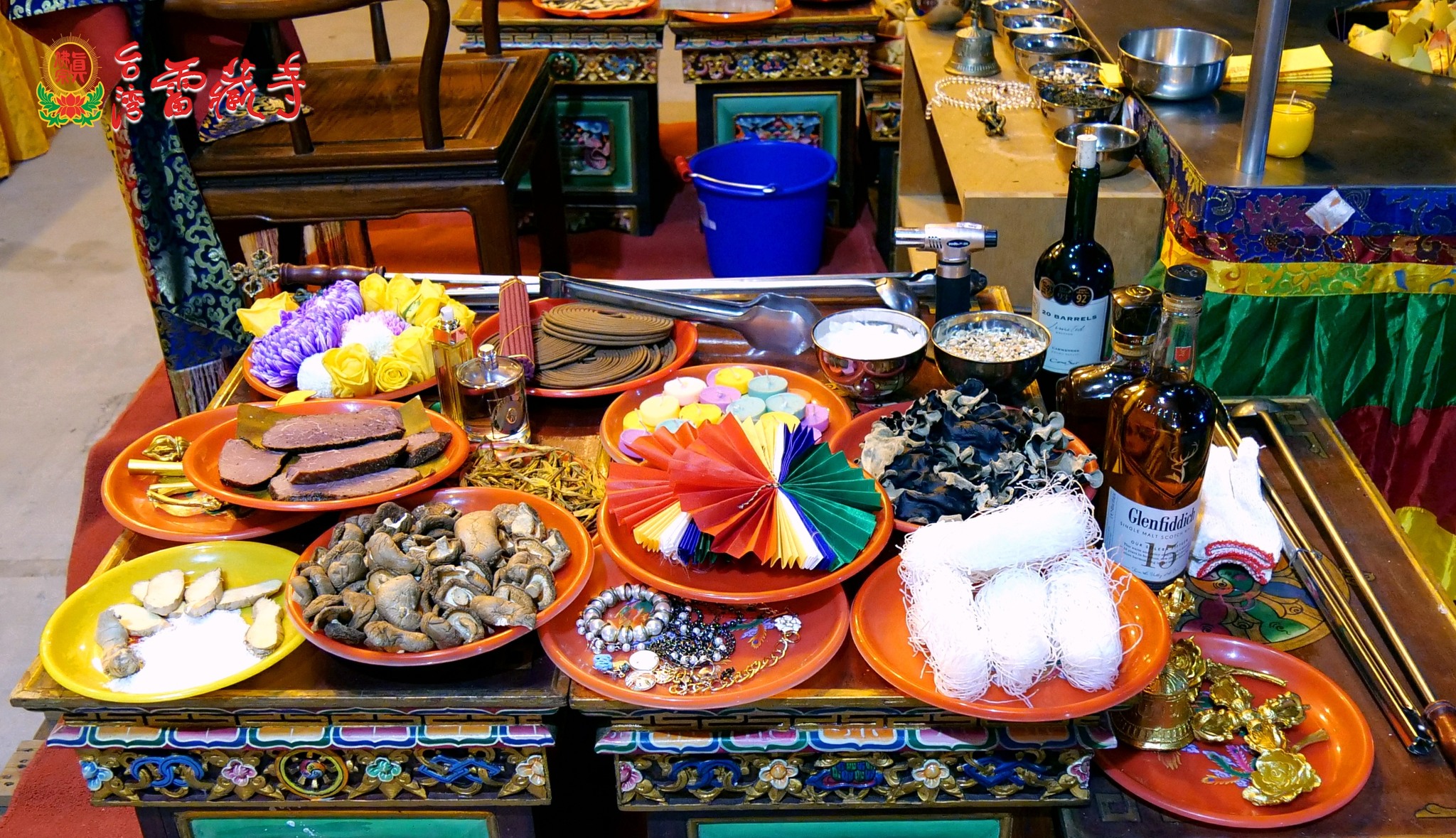當天恰逢藥師如來佛誕,寺方特別虔敬生日蛋糕祝賀,與會師兄師姐們也敬備各種美味佳餚上供,除了供養金母大天尊也祝賀藥師如來佛誕。此次的護摩,下爐供品一樣非常豐盛,應有盡有一應俱全,寺方的用心準備一覽無遺。隨著大眾陸續抵達,龍邊廣場生氣蓬勃熱鬧了起來。