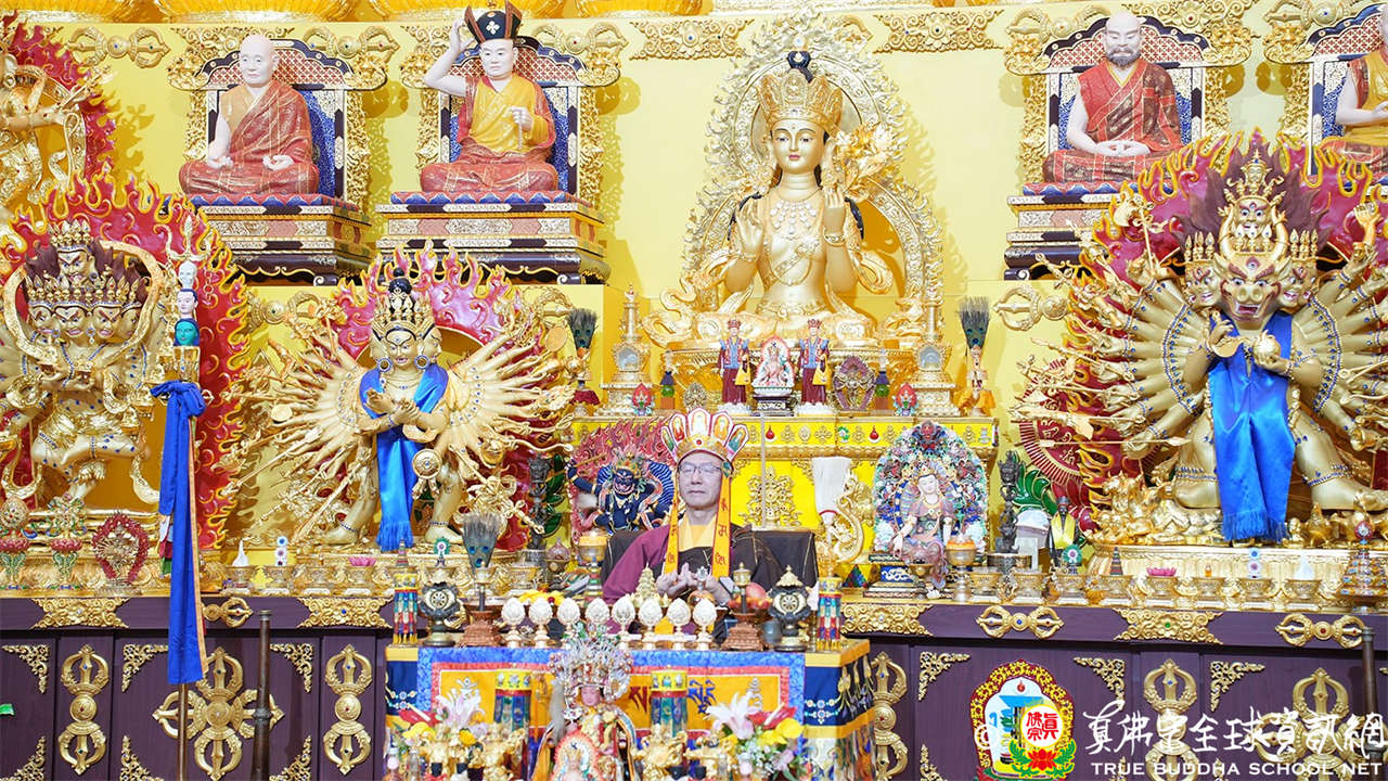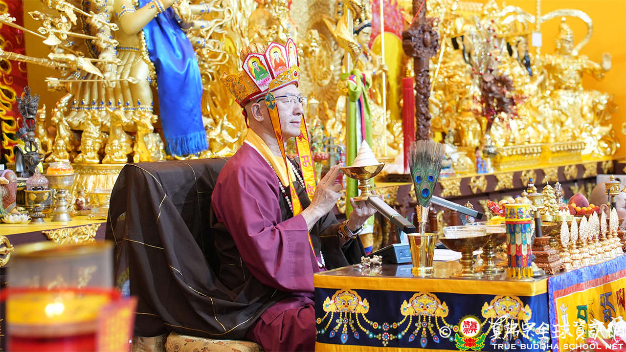 蓮雄上師提醒與會大眾要知道能出席參與今天的薈供是一種福份。薈供是一種廣大的供養,上供諸佛菩薩,中及諸天,下供無量眾生,可謂是人、天、佛菩薩及六道眾生的盛會,因此薈供的功德是非常之大的。除了用我們弟子虔敬的心,祈求佛菩薩加持迴向師佛蓮生聖尊,以報師恩之外,還可為自身消除業障,福慧增長。