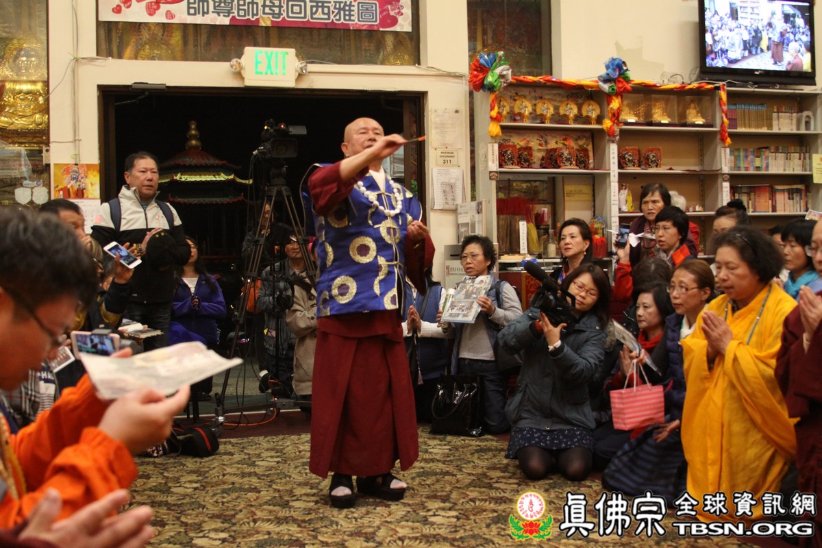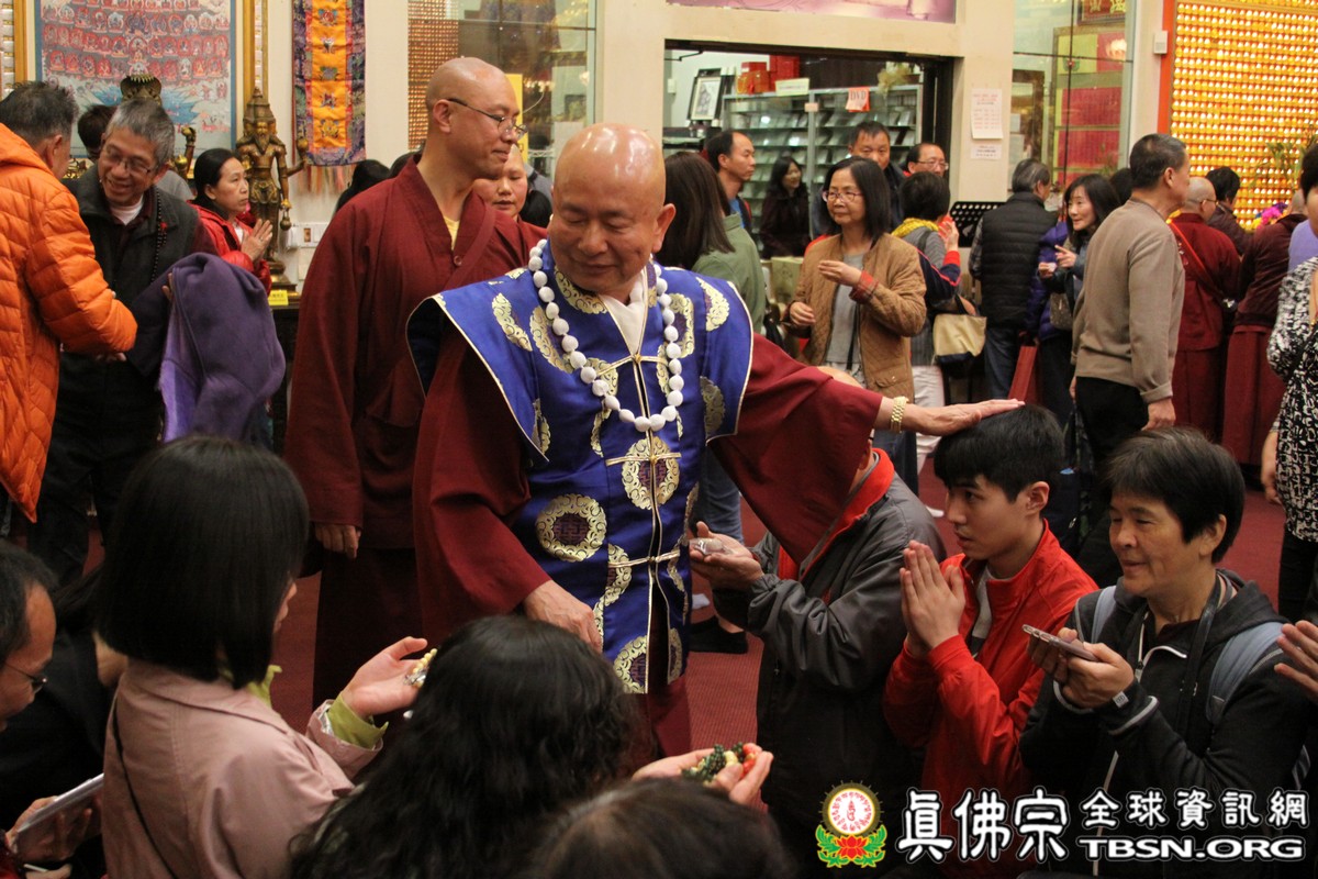 珍貴的開示完畢,師尊為新皈依弟子灌頂、加持壇城與眾等,並為弟子摩頂加持,令眾等法喜充滿。