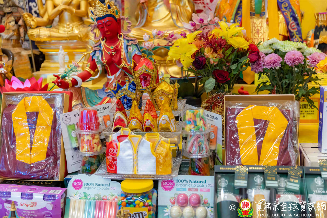 從2023年11月24日下午開始,西雅圖雷藏寺和彩虹雷藏寺的眾上師、法師及義工們,便滿懷著洋溢的熱情,在西雅圖雷藏寺緊鑼密鼓地佈置現場。他們把採購回來的鮮花、食品及禮品,帶著最虔敬的心進行設計、加工、包裝和擺放,重新裝飾成絢麗奪目、豐富多彩的貢品,供養給明日的薈供本尊瑤池金母大天尊等佛菩薩金剛護法龍天諸尊。