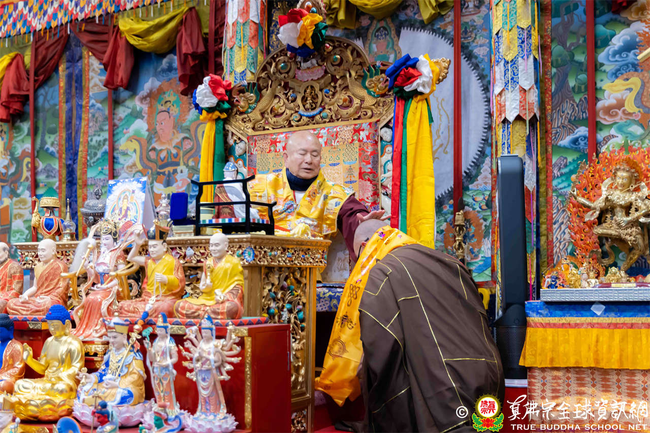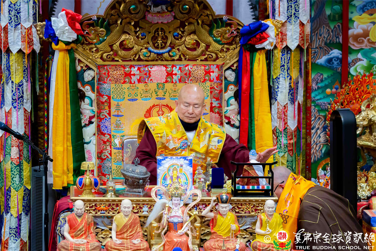 精彩的開示後,聖尊與zoom上弟子們互相問候,並為現場弟子灌頂「除蓋障菩薩」法。法會圓滿吉祥。