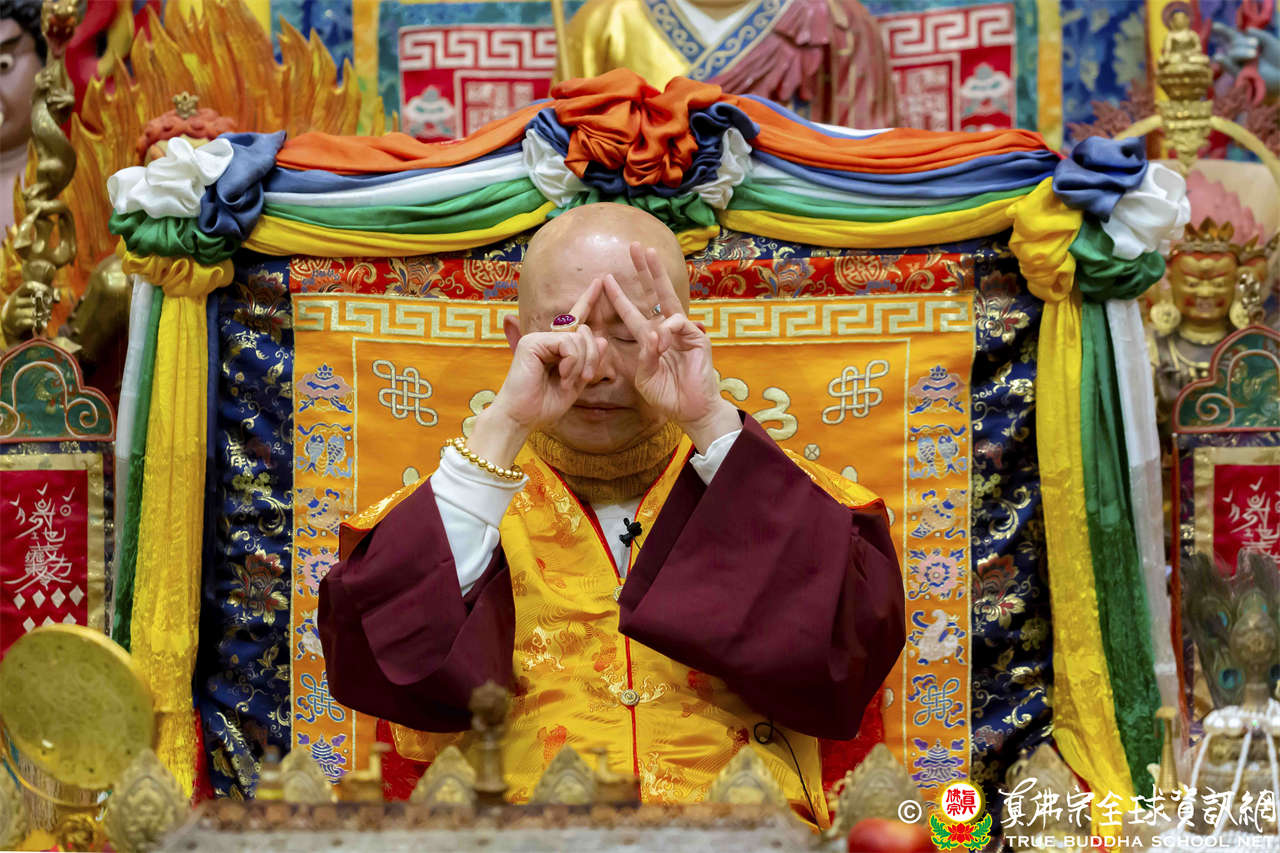 本週同修主尊是地藏王菩薩。同修結束後,播放了台灣雷藏寺為聖尊、師母祈求健康長壽住世的朝山影片,只見許多上師、法師、同門沿著山路三步一拜,一直拜到山上的金母殿。聖尊表示,看了台灣雷藏寺為盧師尊跟師母的祈福朝山,還有全世界所有道場做護摩、誦經、持咒,一則是很感動,二則覺得浪費真佛宗的資源,實在是很抱歉。(眾弟子回應:這是我們應該做的。)本來很健康,但突然病就來,印證了無常。