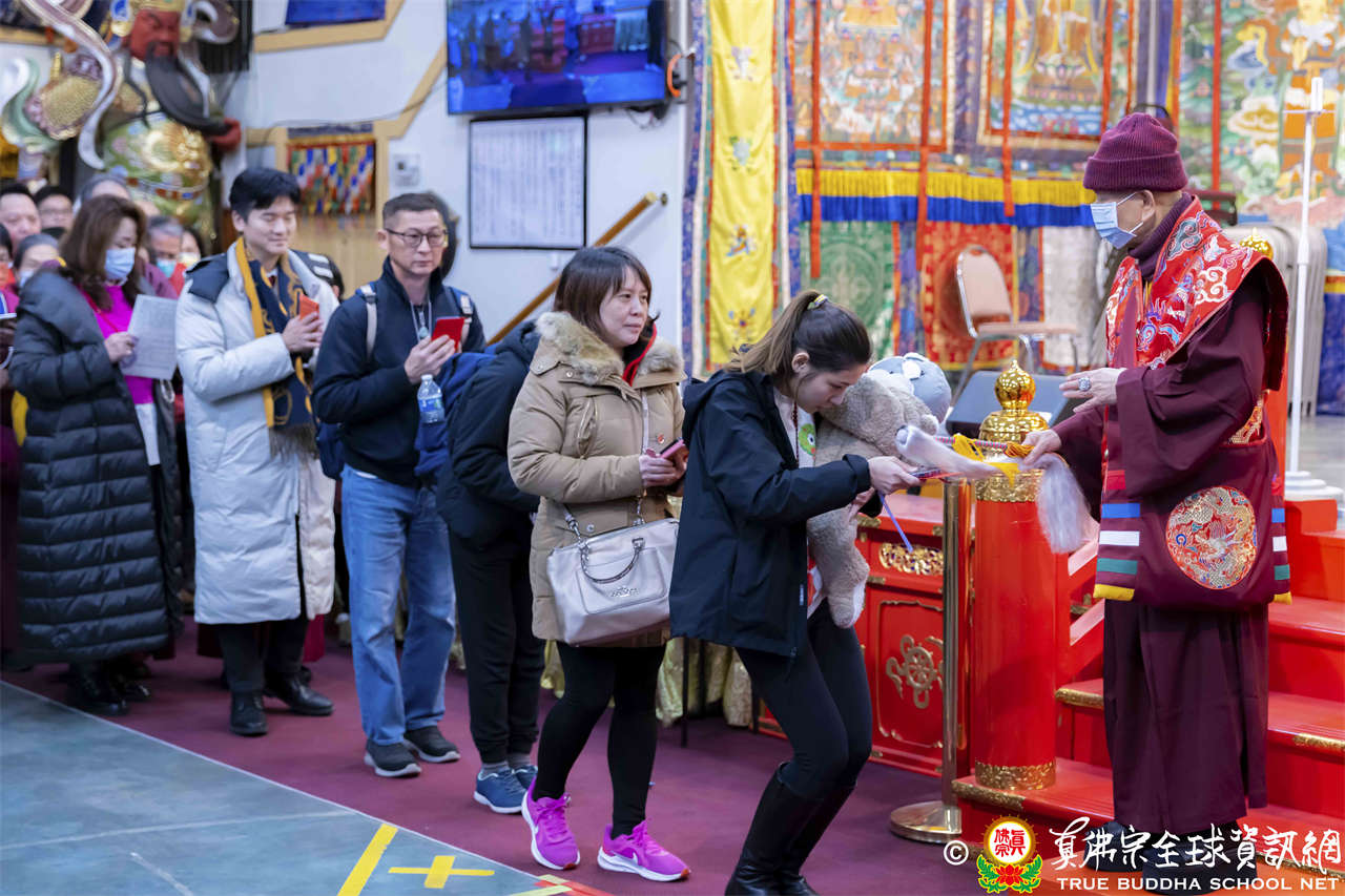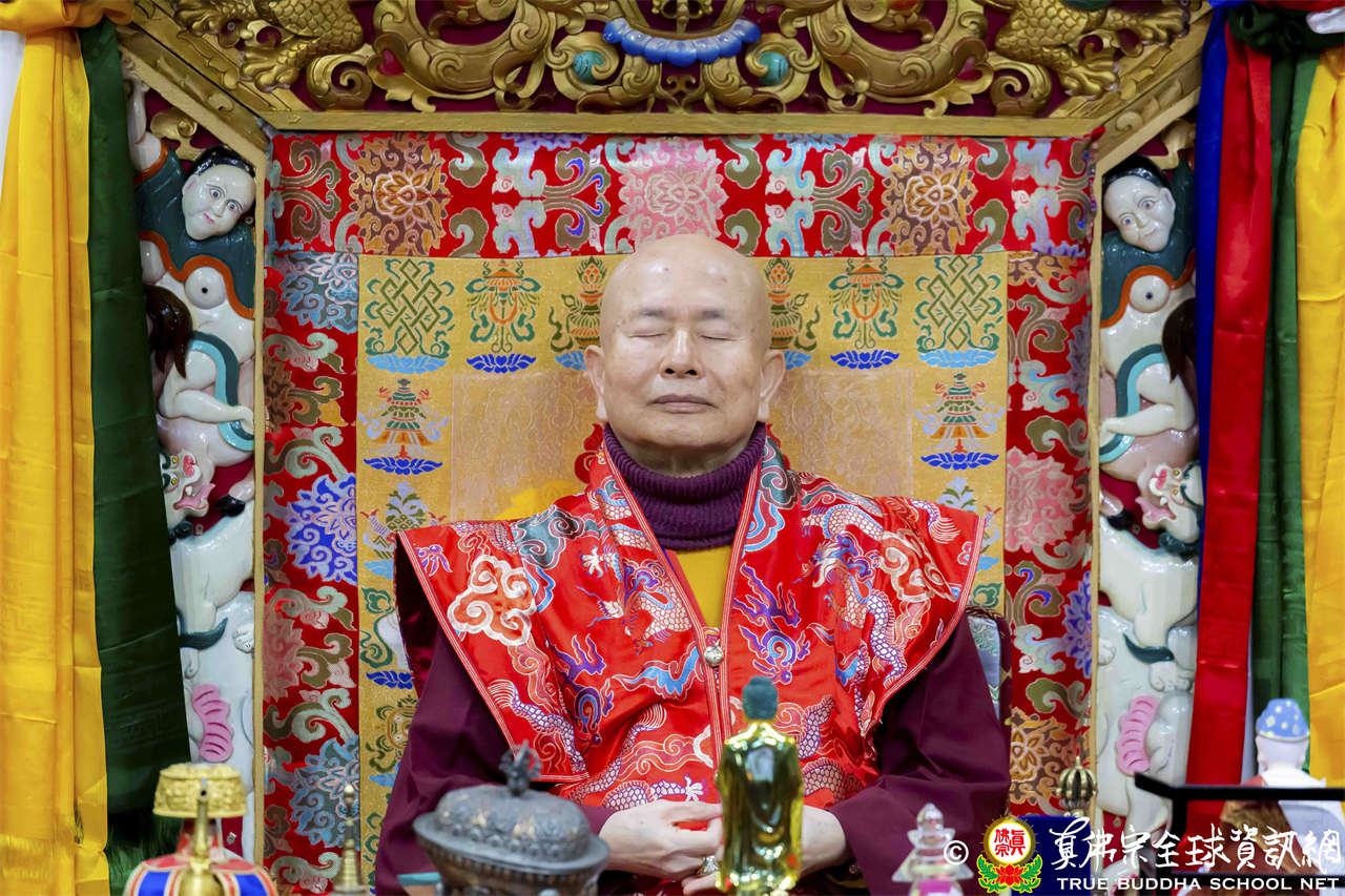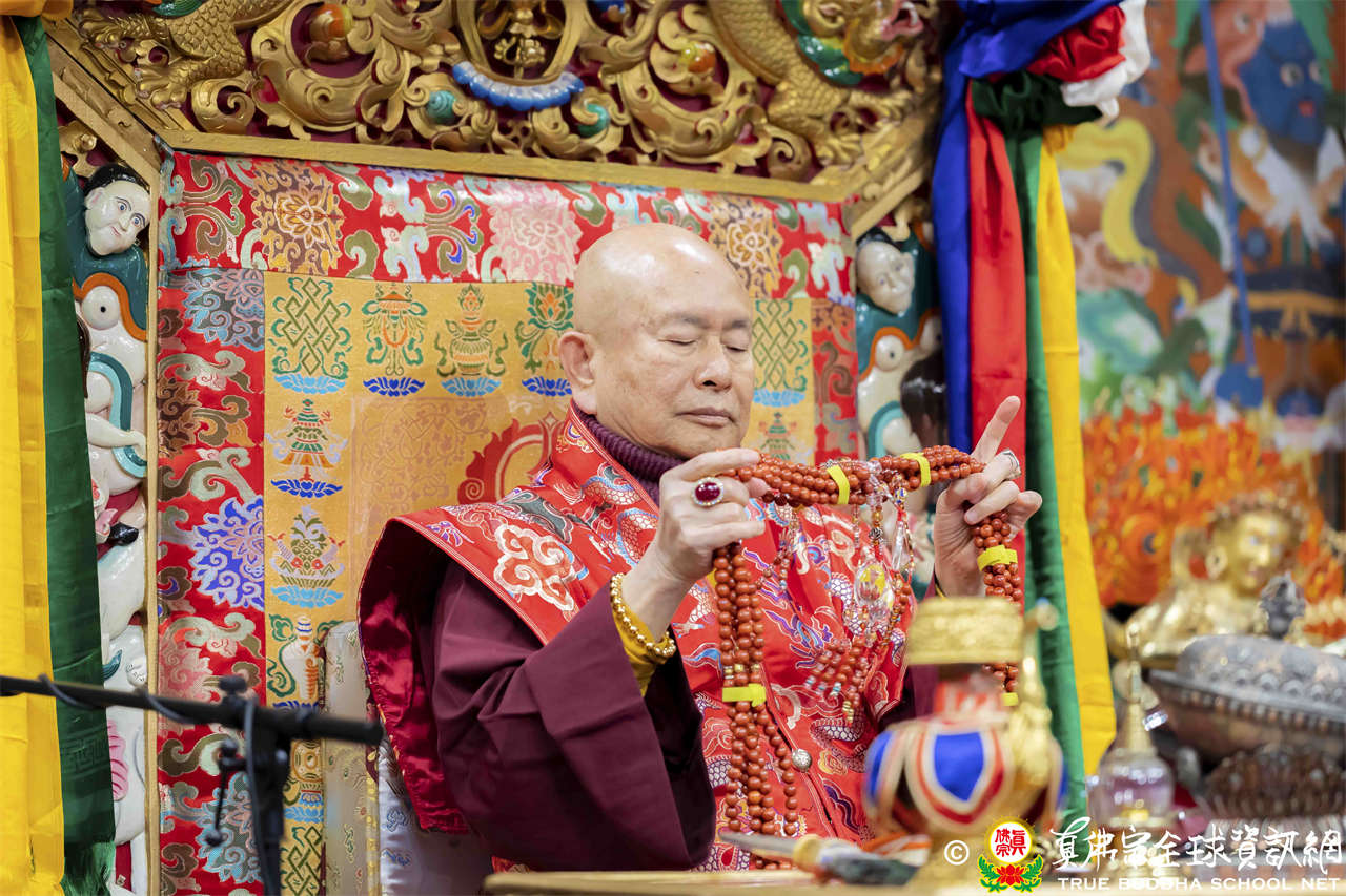 法王開示至此,護摩法會圓滿結束。接著,法王與線上的弟子打招呼,並爲現場出席者賜授阿彌陀佛法灌頂。