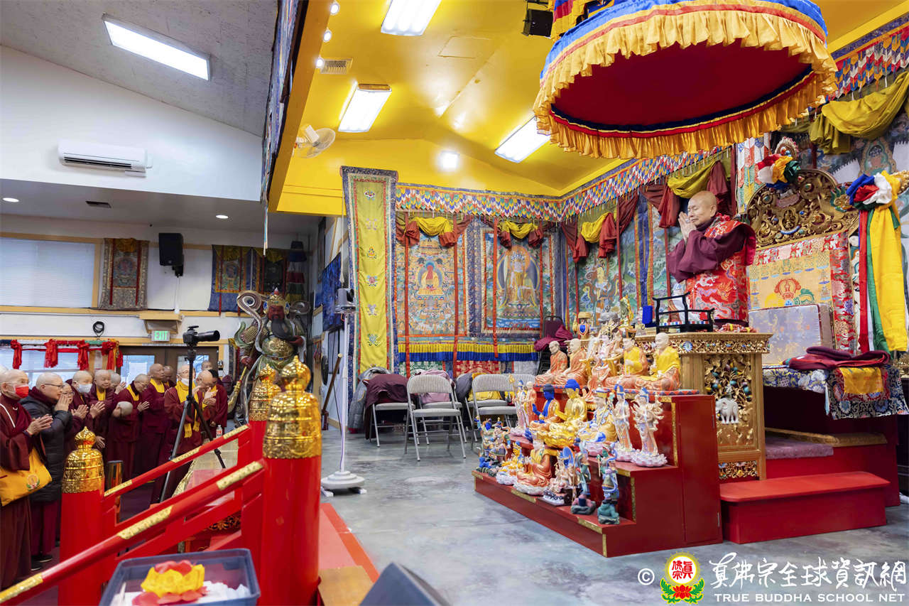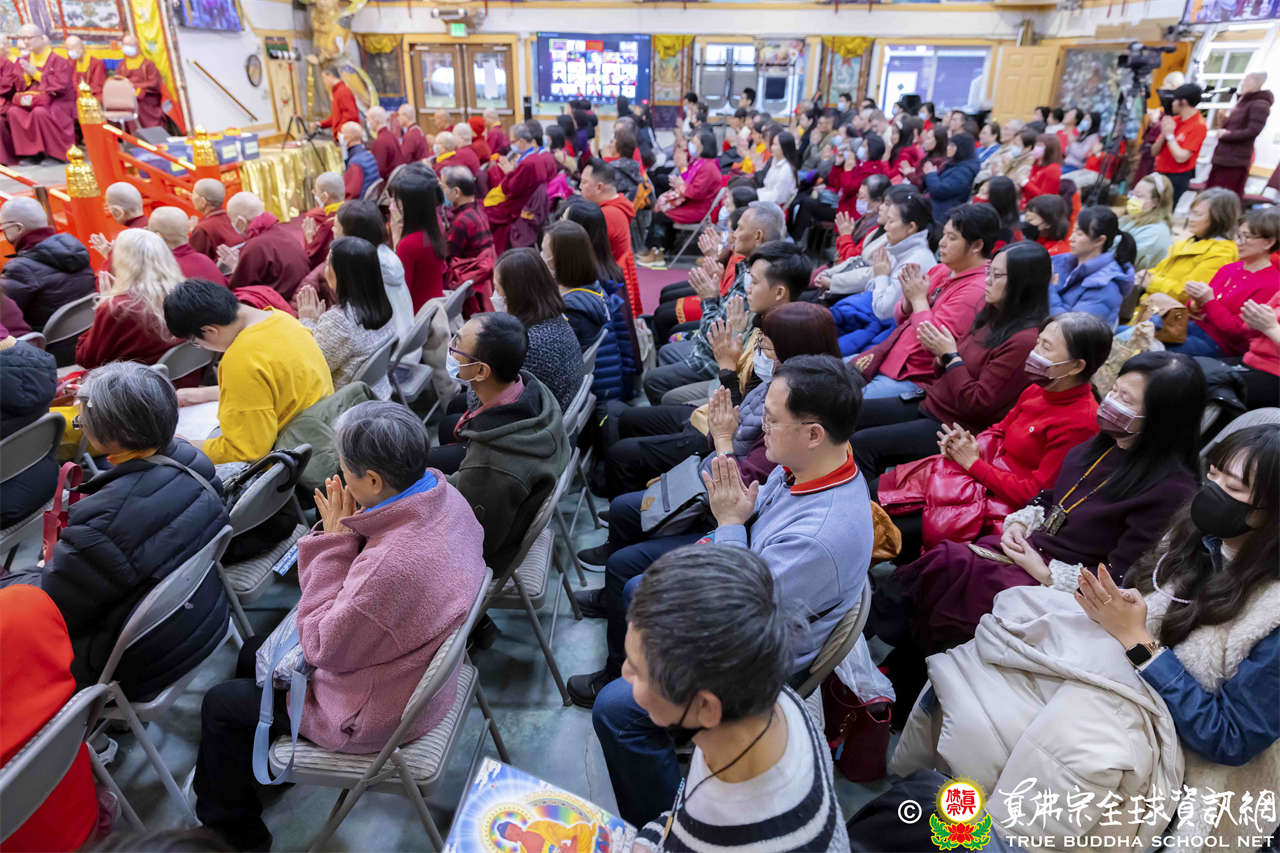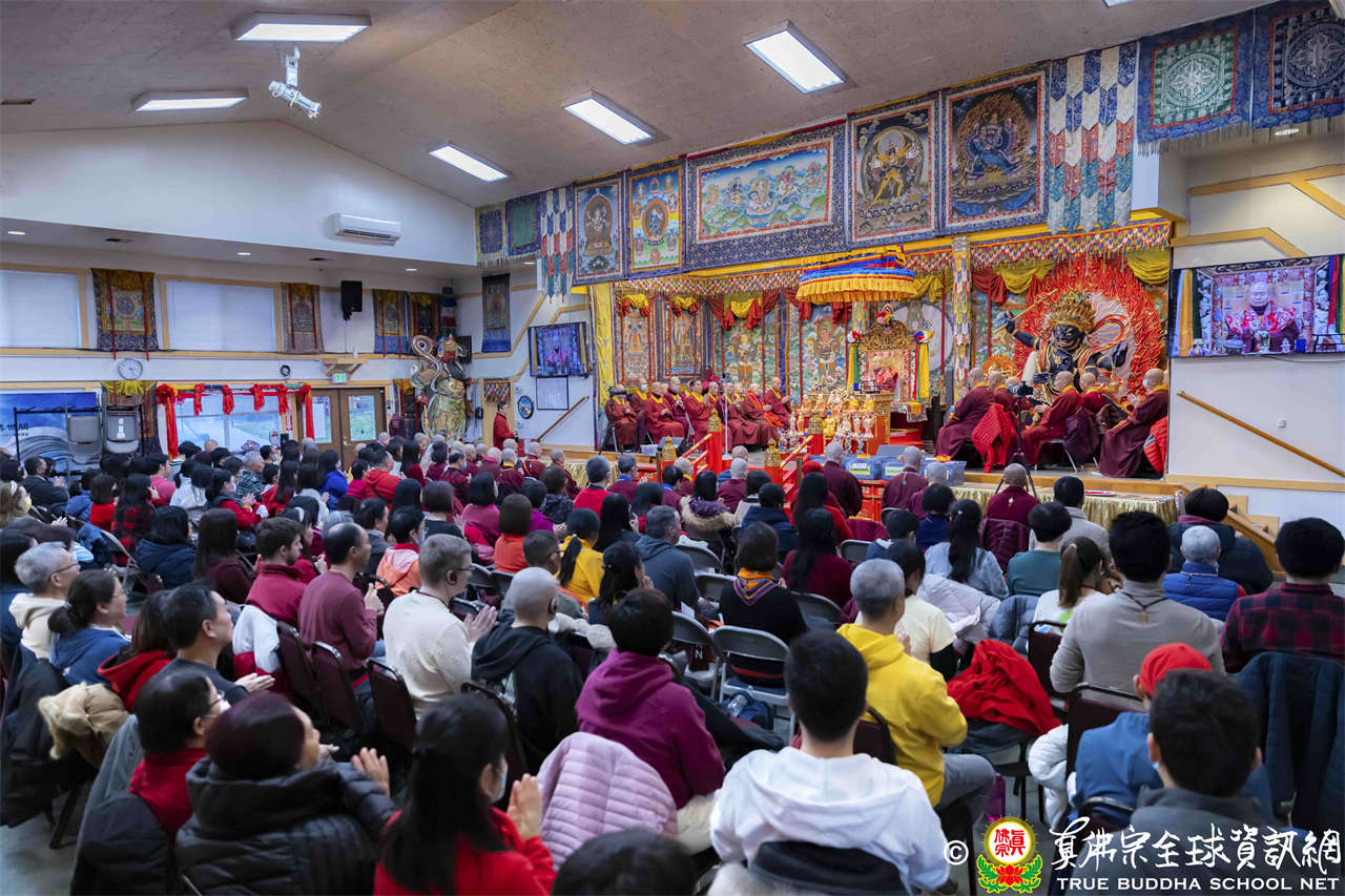法王開示至此,護摩法會圓滿結束。接著,法王與線上的弟子打招呼,並爲現場出席者賜授阿彌陀佛法灌頂。