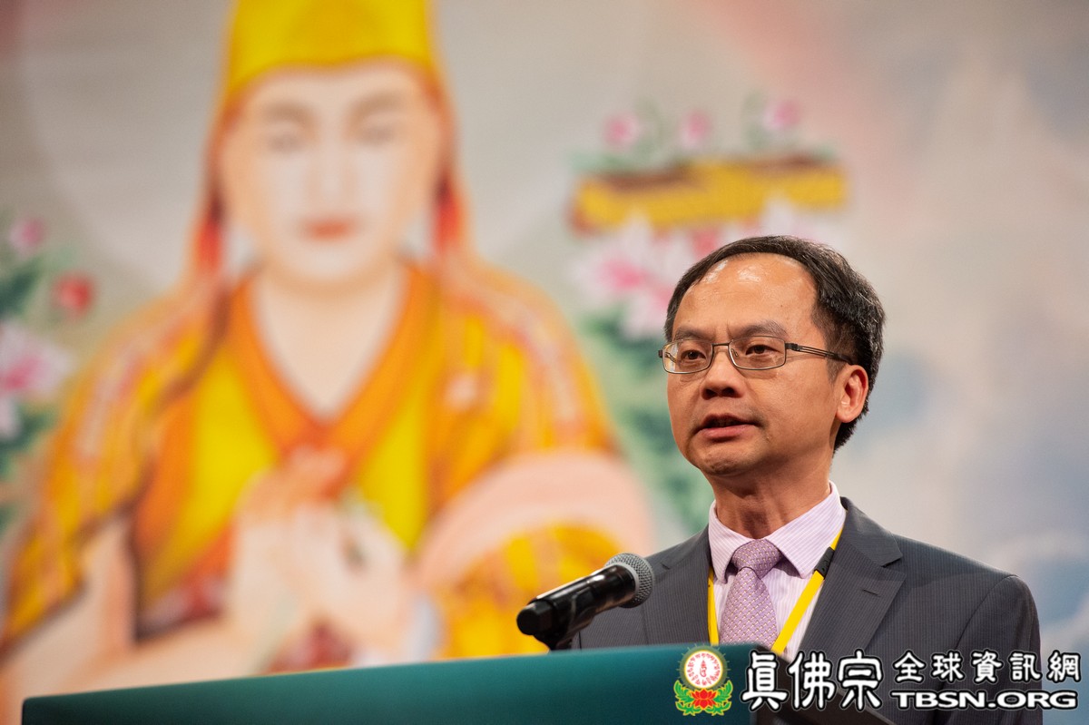 中華民國駐西雅圖臺北經濟文化辦事處副處長劉政星先生致詞時表示,他的內心充滿感動、法喜,因為與大家共沐佛光。他祝福師尊、師母及大家身體健康平安,他相信今天的法會能為社會帶來正向安定的祥和力量。