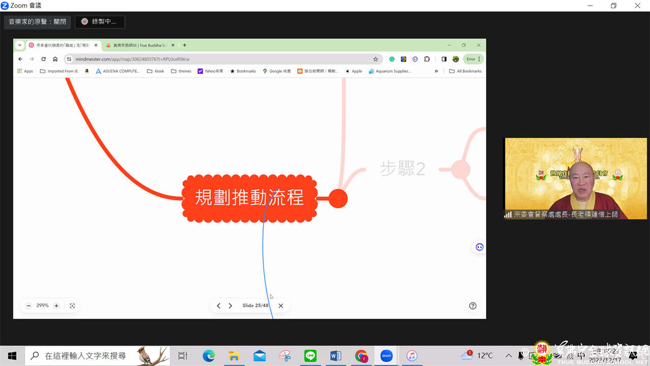 接著由釋蓮僧上師向各代辦處說明:宗委會代辦處的「職能」及「規劃推動流程」,分為四大部分做講解: