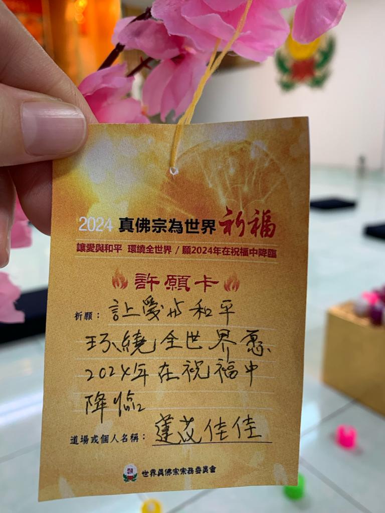 感謝馬來西亞中道堂為世界祈福 點一盞燈,為世界燃起希望。 點一盞燈,讓世界更明亮。 讓愛與和平 環繞全世界 願2024年在祝福中降臨 宗委會文宣處之2024真佛宗為世界祈福活動圓滿舉行! 感謝馬來西亞中道堂的參與! 每一份參與,都是一份心力。每一份心力,都為這世界帶來光明。真佛宗道場萬分用心的準備與參與,每一位參與持咒的同門,都令人感動!2024,因為有您們的愛,就有了曙光!