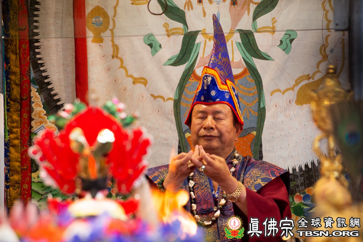 蓮生法王開示時首先傳授密集金剛念誦法。昨天的法會首傳宗喀巴祖師念誦法,而宗喀巴以密集金剛為最大的護法,另外下星期日的護摩主尊大威德金剛亦是宗喀巴祖師的護法。