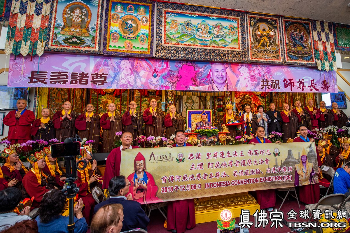 殊勝的密集金剛護摩後,宗委會處長們連同印尼密教總會與印尼密教總協會代表,一同向法王請法,恭請法王於2018年12月8日親臨印尼主持阿底峽尊者大法會,首傳阿底峽尊者大法。主辦單位獻上深具意義的禮物迎請法王,包括阿底峽尊者金身、菩提道炬輪、卡當佛塔、綠度母金身、法王祖衣、金色龍袍、金色法王帽、婆羅浮屠佛塔、法螺及法輪等等。