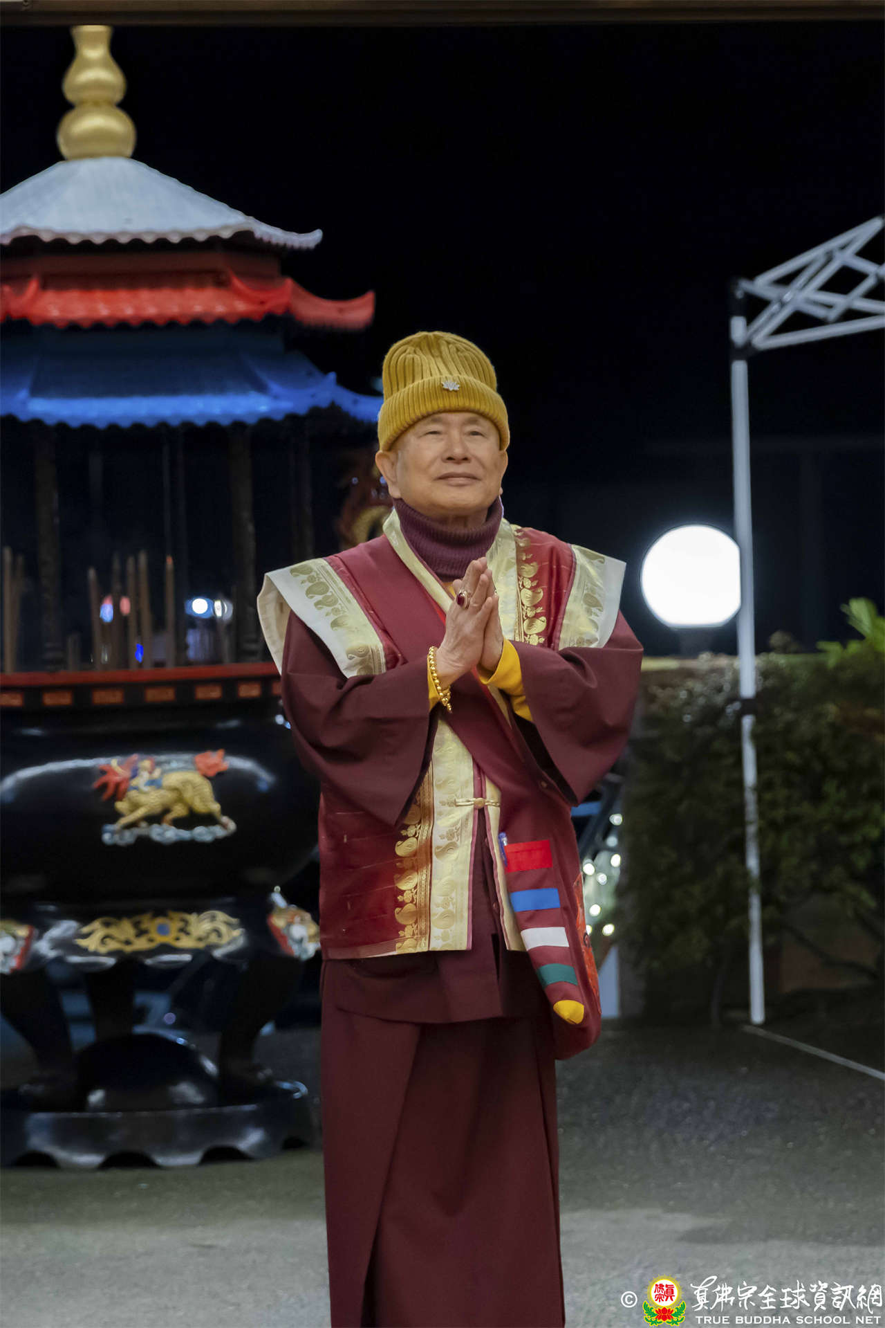 聖尊蓮生活佛在寶貴的法語開示之後,以拂塵加持與會大眾。祈願新的一年在聖尊慈悲的加持守護之下,一切如初曉般清新,如星辰般燦爛,共同演繹殊勝法緣的篇章。