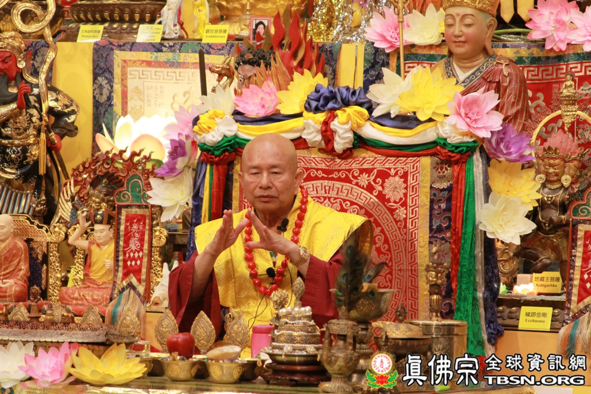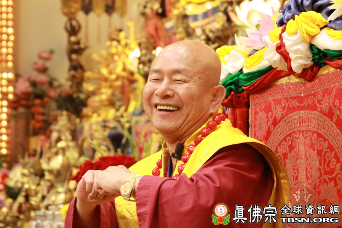 精彩圓滿的開示結束後,聖尊與大眾一起唱誦佛號,並為求皈依的信眾賜受灌頂、加持大悲咒水,以及開光佛像,臨行前還為大眾摩頂加持。求摩頂加持的信眾,人潮排到寺外的圓環,可以完全感受到真佛弟子們踴躍護持根本上師及虔誠重法的心。感恩根本上師再次傳授無上殊勝大法,利益無數眾生。