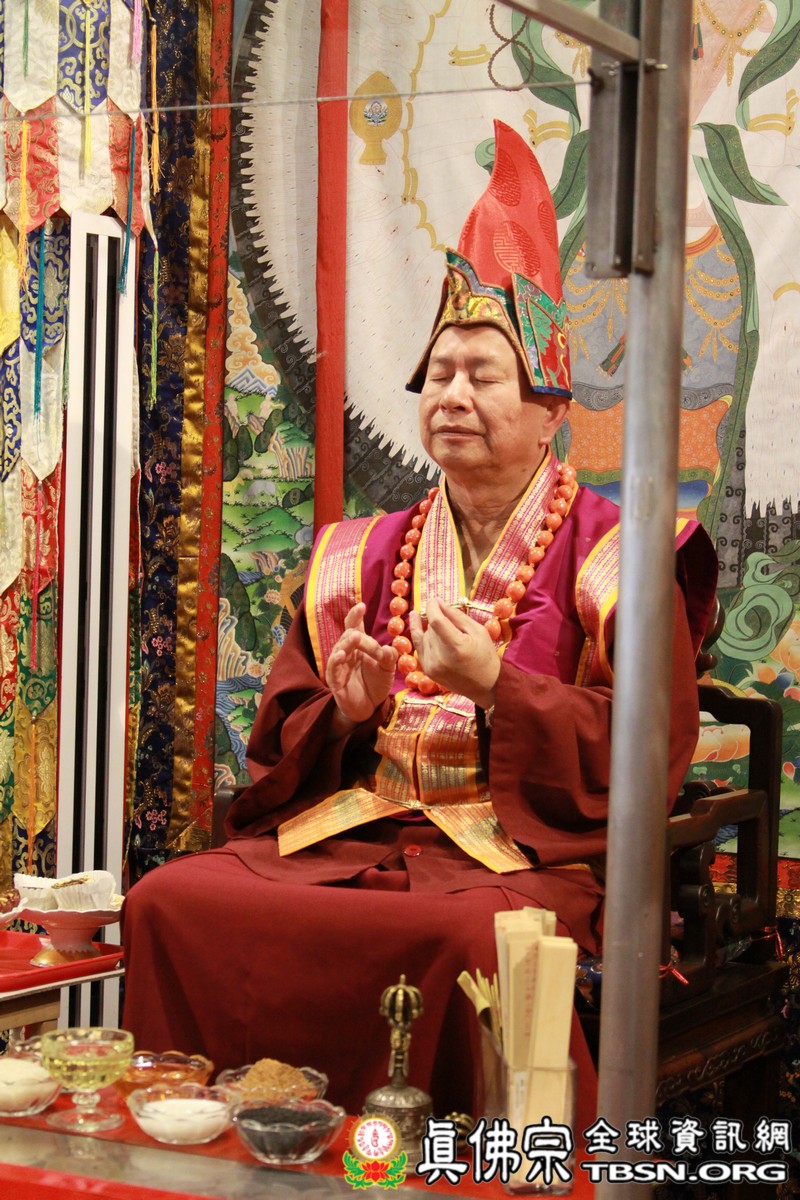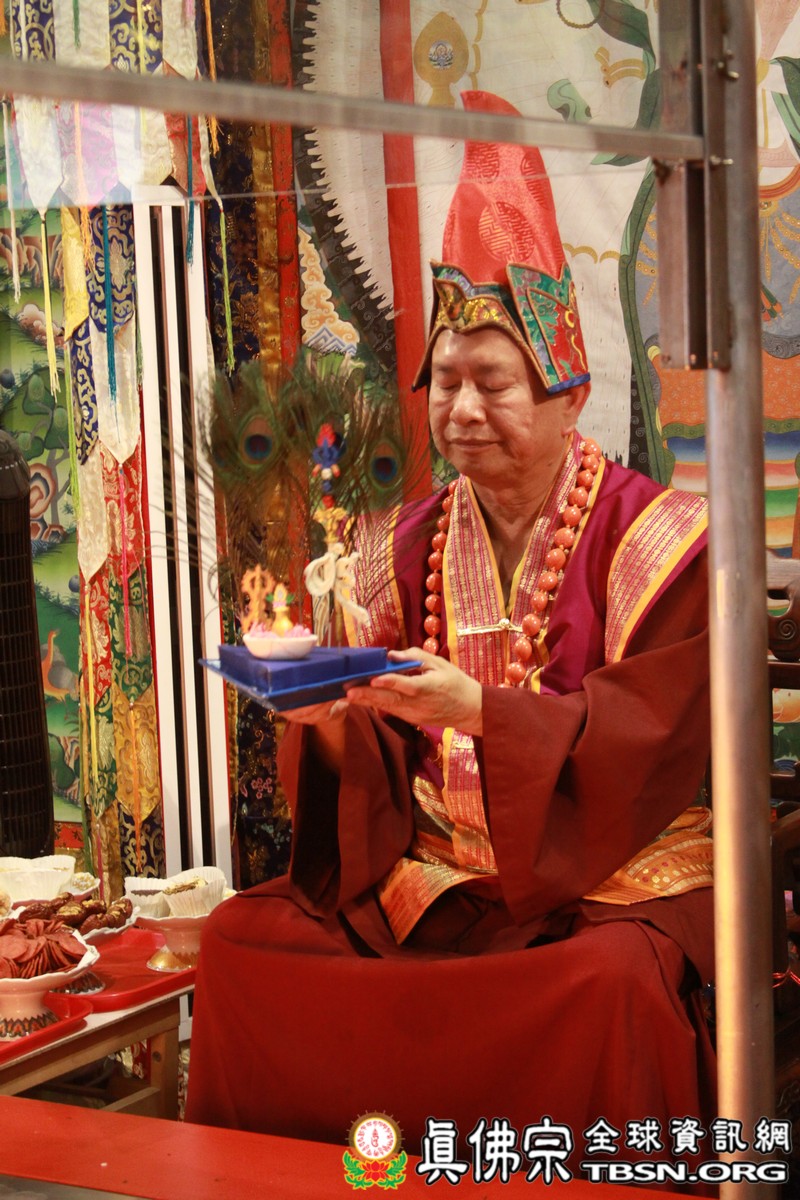 接著下午三時,真佛宗根本傳承上師無上法王蓮生活佛,主持「蓮華生大士護摩大法會」,並講授《道果》。