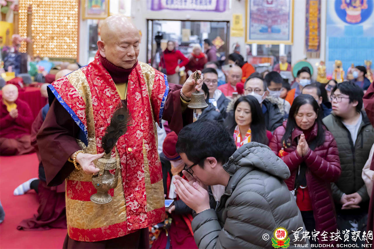 聖尊精彩的比喻與開示,讓信眾們理解到維摩詰居士的神通不可思議,大家報以熱烈的掌聲。接著法王為新皈依者做皈依灌頂,加持大悲水,並以佛塵一一加持與會大衆。
