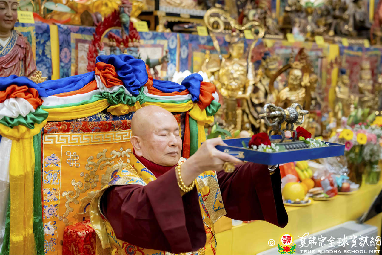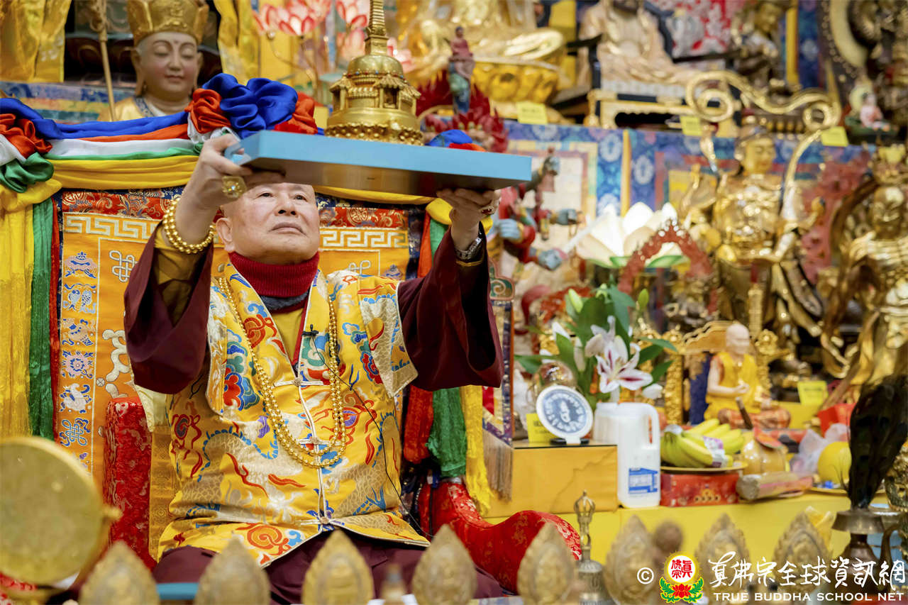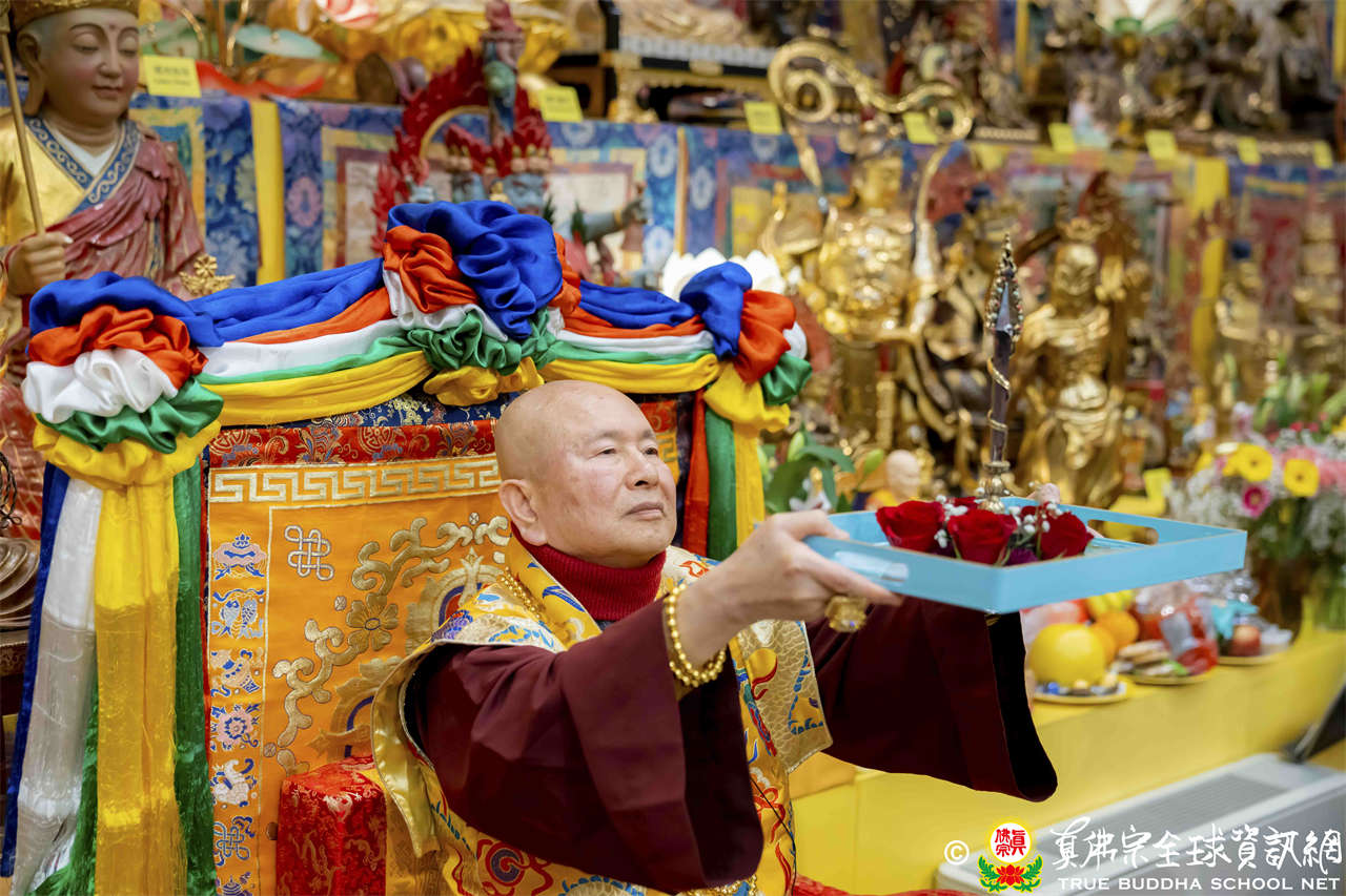 同修後, 西雅圖雷藏寺住持蓮吟上師及彩虹雷藏寺住持蓮彥上師率眾向聖尊請法,恭請聖尊主持2024年新春大法會——2月24日觀世音菩薩大法會暨傳授七眼佛母天眼通秘密法、2月25日聖觀音第一富豪法護摩大法會。