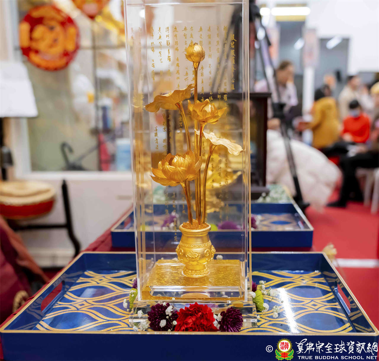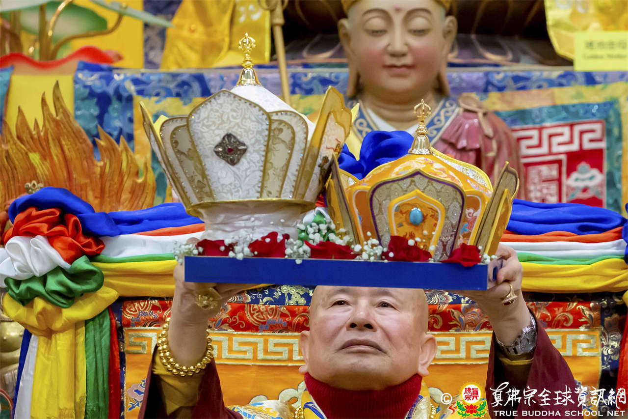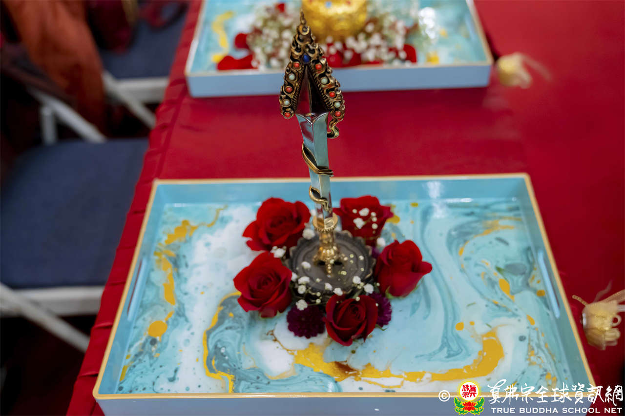 因為今天是大年初一,所以特別有這掃把的灌頂幡,這是只有True Buddha School才有的。一掃煩惱輕,二掃過去的霉運全部除掉,三掃業障消,也就是過了這掃把的灌頂幡後,過去的一切全部掃除乾淨,以後就全部是福分來臨,這是今天晚上最重要的。(大眾熱烈鼓掌)