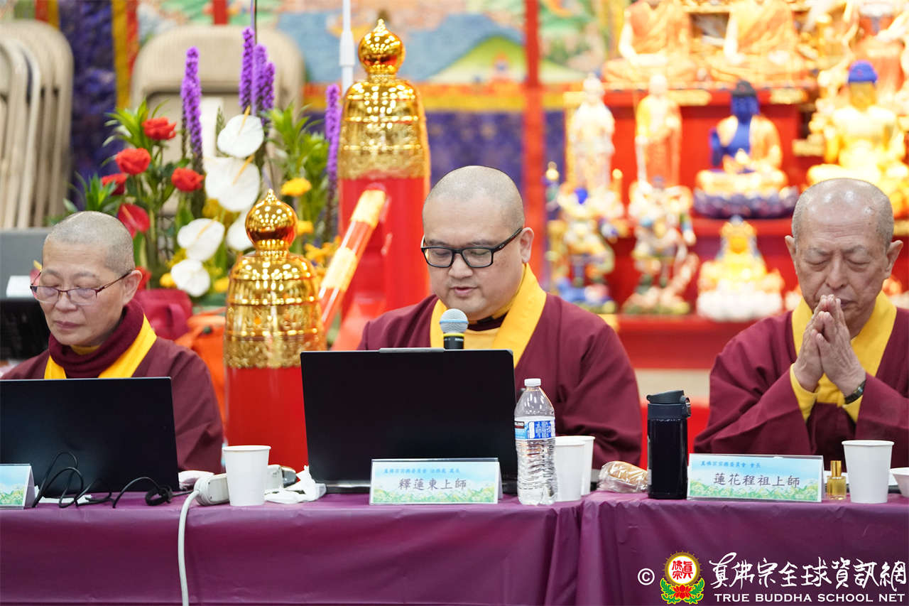 主席宗委會會長蓮花程祖上師於開幕致詞時回顧到,宗委會處長們於2023年巡迴下鄉,先到馬來西亞與馬密總聯辦供僧大會及真佛教育,緊接著到印尼由圓月堂統籌主辦生活營,接著回到新加坡拜訪各道場及拜訪新加坡華光功德會,所到各地皆舉辦了供僧活動。接著是與美國、加拿大及大洋洲宗委會代辦處的線上會議,啟動各地代辦處的服務窗口。再來是宗委會與傳法部及監察會交流會。今年2024年各處長預定行程將到印尼坤甸生活營、新加坡道場巡禮、與馬密總聯辦供僧大會暨真佛教育。接著覆準前期議案,出席上師全體舉手表決通過。
