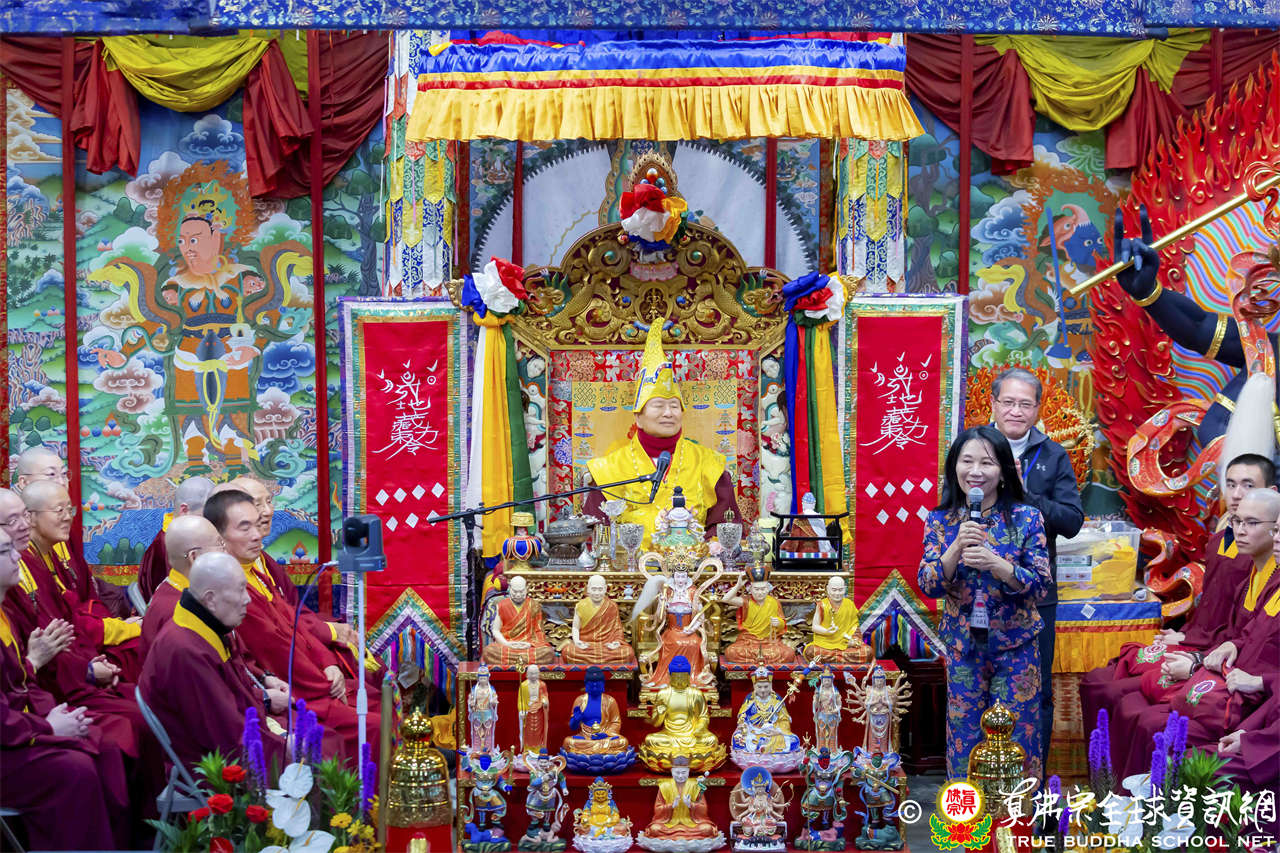 護摩結束後,大會歡迎是日貴賓,來自貝爾維尤(City of Bellevue)的李瑞麟(Conrad Lee)前市長、紐卡斯爾(City of New Castle)的孫榮芬(Sun Burford)市議員及廖東周大使上台合影。此外,李瑞麟前市長表示為蓮生法王對於社會所提供的幫助非常欽佩及感激。孫榮芬也表示能夠來臨法王的法會感到榮幸,同時也對法王表達崇高的敬意。