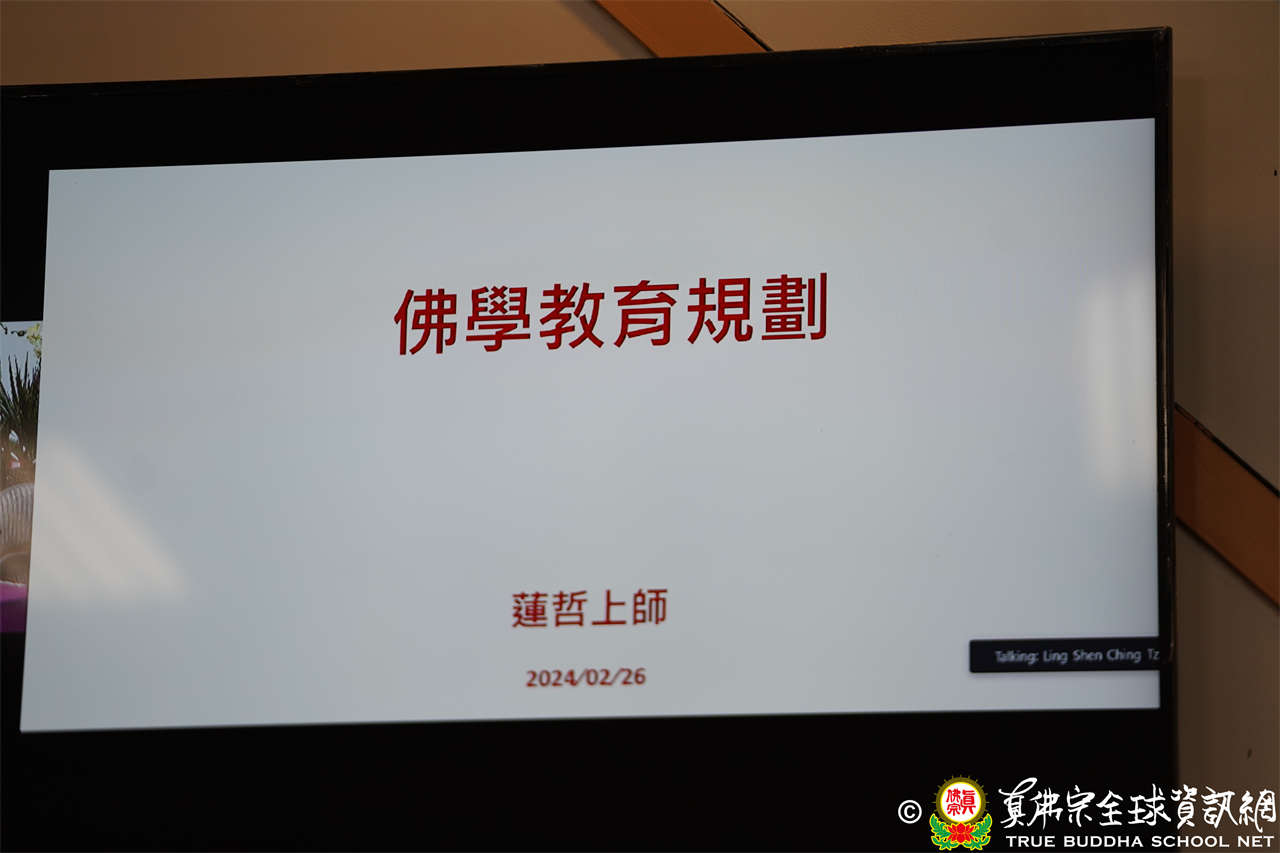 育賢司司長蓮哲長老報告:上次會議通過佛學教育規劃,以真如、瑜伽、唯識、中觀、般若等五大項為佛法全部。師佛的教法以瑜伽為主;另外師佛在2019年3月應教授團的請示,親筆寫下「真佛宗開悟學院」及「道顯密研究所」的墨寶,期望推動真佛教育發展。五大項的教材編輯,授課老師與指導老師,密教內法的授課與指導,都需要教育菁英團隊。教育處長蓮訶上師也補充說明,教育處目前需要幫忙的是授課老師與教材編輯方面。