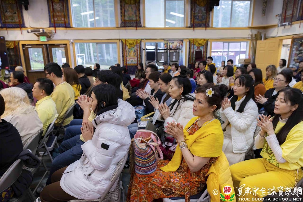 聖尊最後講了一個深具寓意的笑話:「小明問小狗,怎樣才能像你這麼開心呢?小狗講:忘!忘!忘!」聖尊接著説,「事實上會煩惱,就是因爲不能忘。你一定要忘掉,過去的垃圾全部倒掉。忘掉淨空,這樣子才能夠普現色身,才能夠出現本尊,看見上師。」