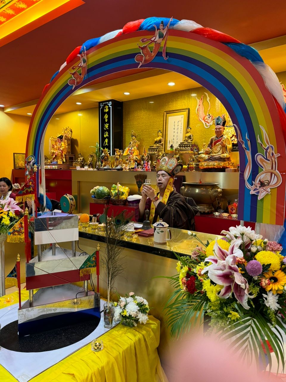 蓮僅上師於2024年5月1日在馬來西亞金海同修會主壇專壇「請佛住世瑤池金母水供」,迴向師佛: