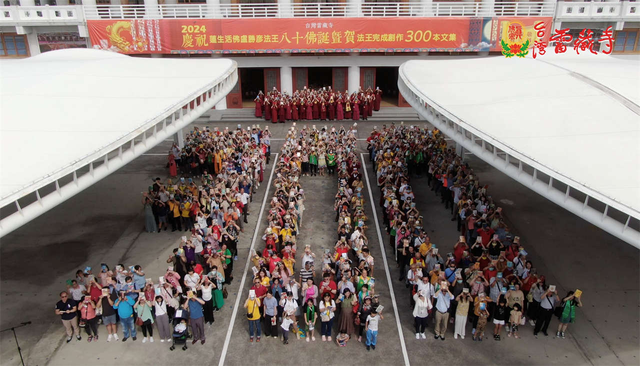 超過600名讀者與同門共同參與「蓮生法王80佛誕暨完成創作300本鉅作」慶祝活動,以熱情誠摯的心,在眾人共同拼成"80 "與"300 ",象徵慶祝蓮生法王80壽誕熱情祝賀之意,及跨越300本文集,蓮生法王以"書"利益人天 、渡眾無量!並持續創作無極限之慶祝!
