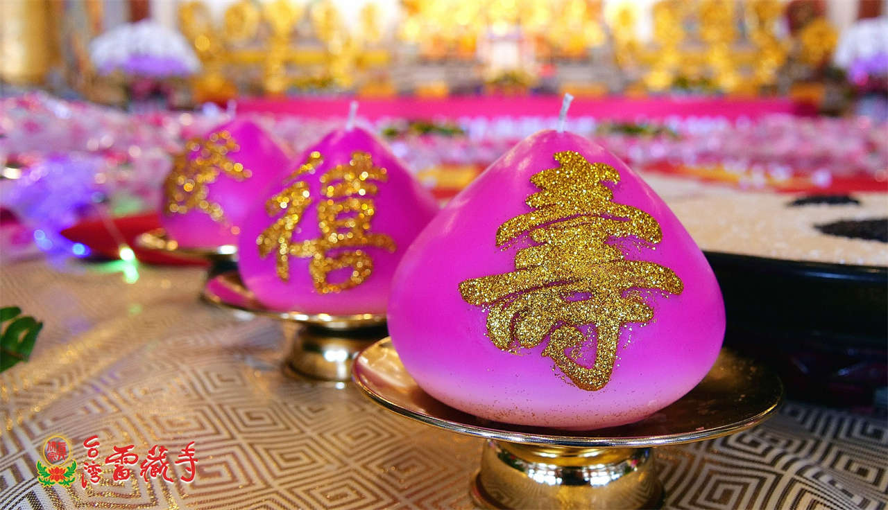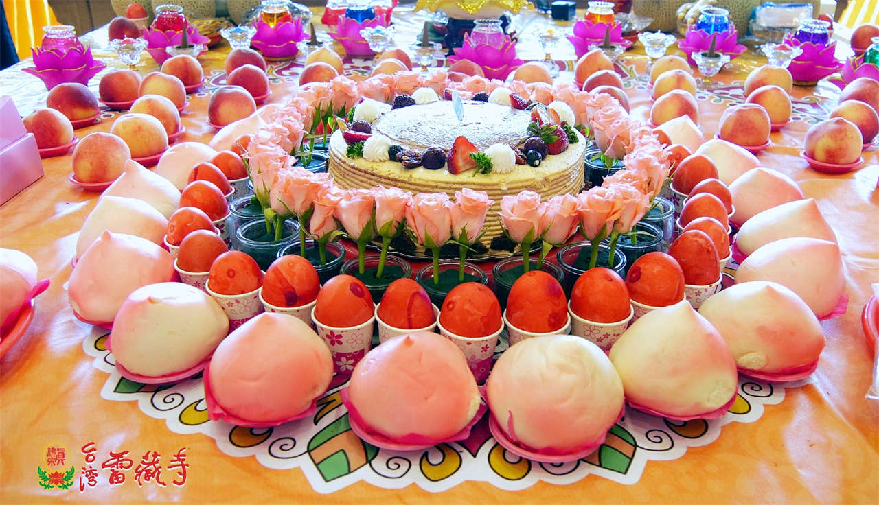 台灣雷藏寺為慶祝「蓮生法王80佛誕暨完成創作300本鉅作」啟動暖壽慶典等系列活動,在大門入口處、廣場均掛上喜慶「聖凡雙喜盛筵」大布條。