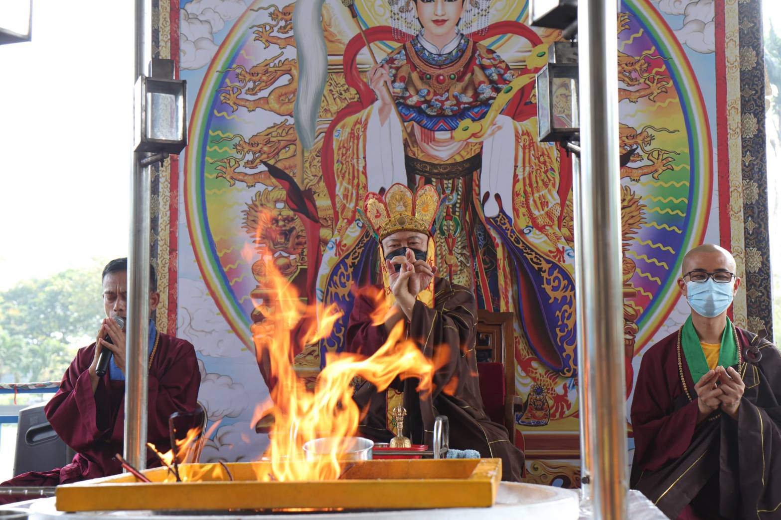 蓮飛上師於2024年5月19日在印尼雷藏寺主壇專壇「請佛住世瑤池金母護摩」,迴向師佛: