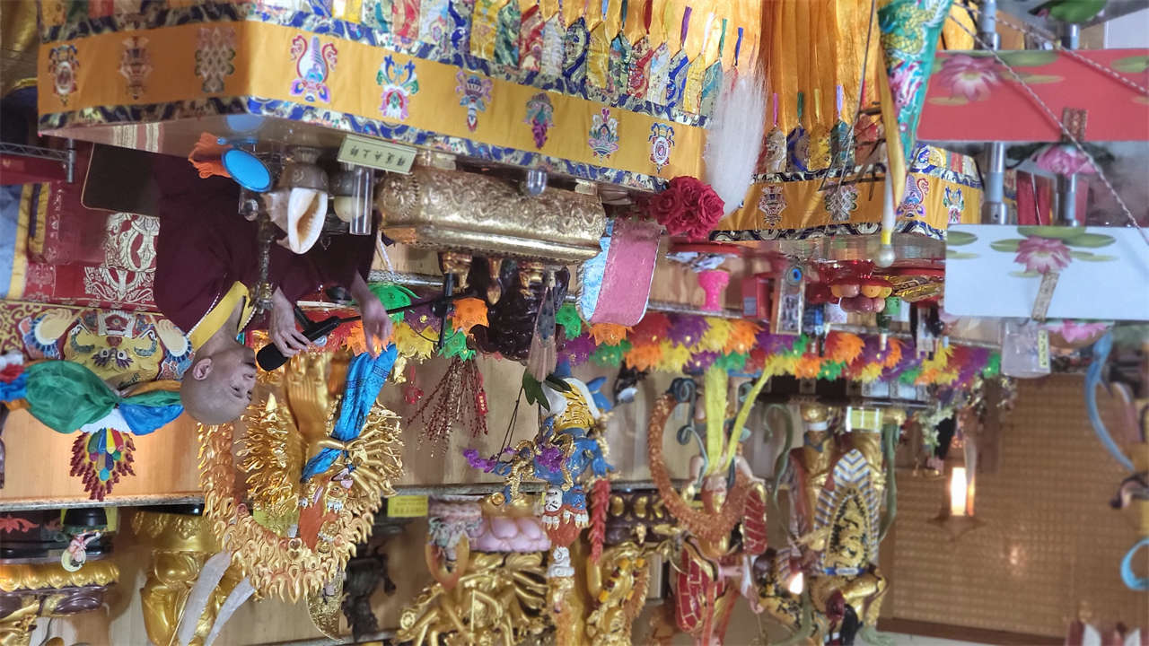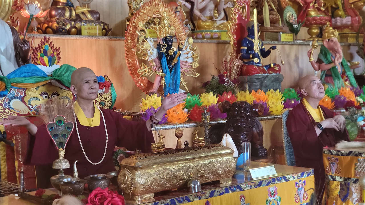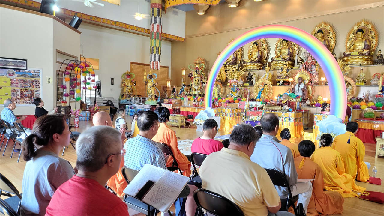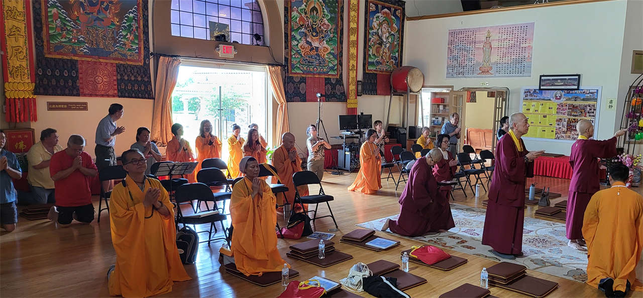 釋蓮央金剛上師於2024年5月19日在美國達拉斯三輪雷藏寺主壇專壇「請佛住世瑤池金母水供」,迴向師佛: