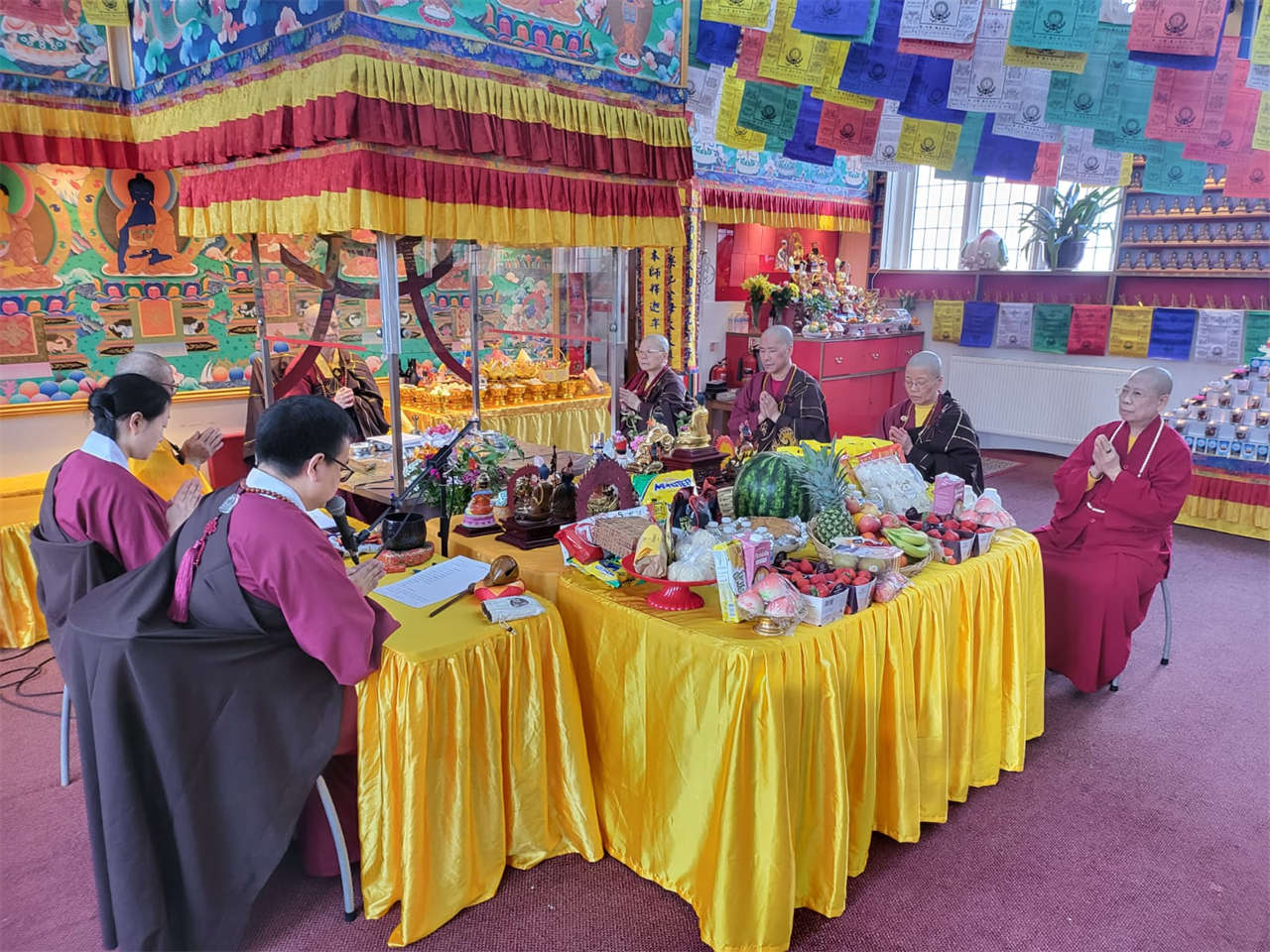釋蓮聲上師於2024年5月19日在英國真渡雷藏寺主壇專壇「請佛住世瑤池金母護摩」,迴向師佛:
