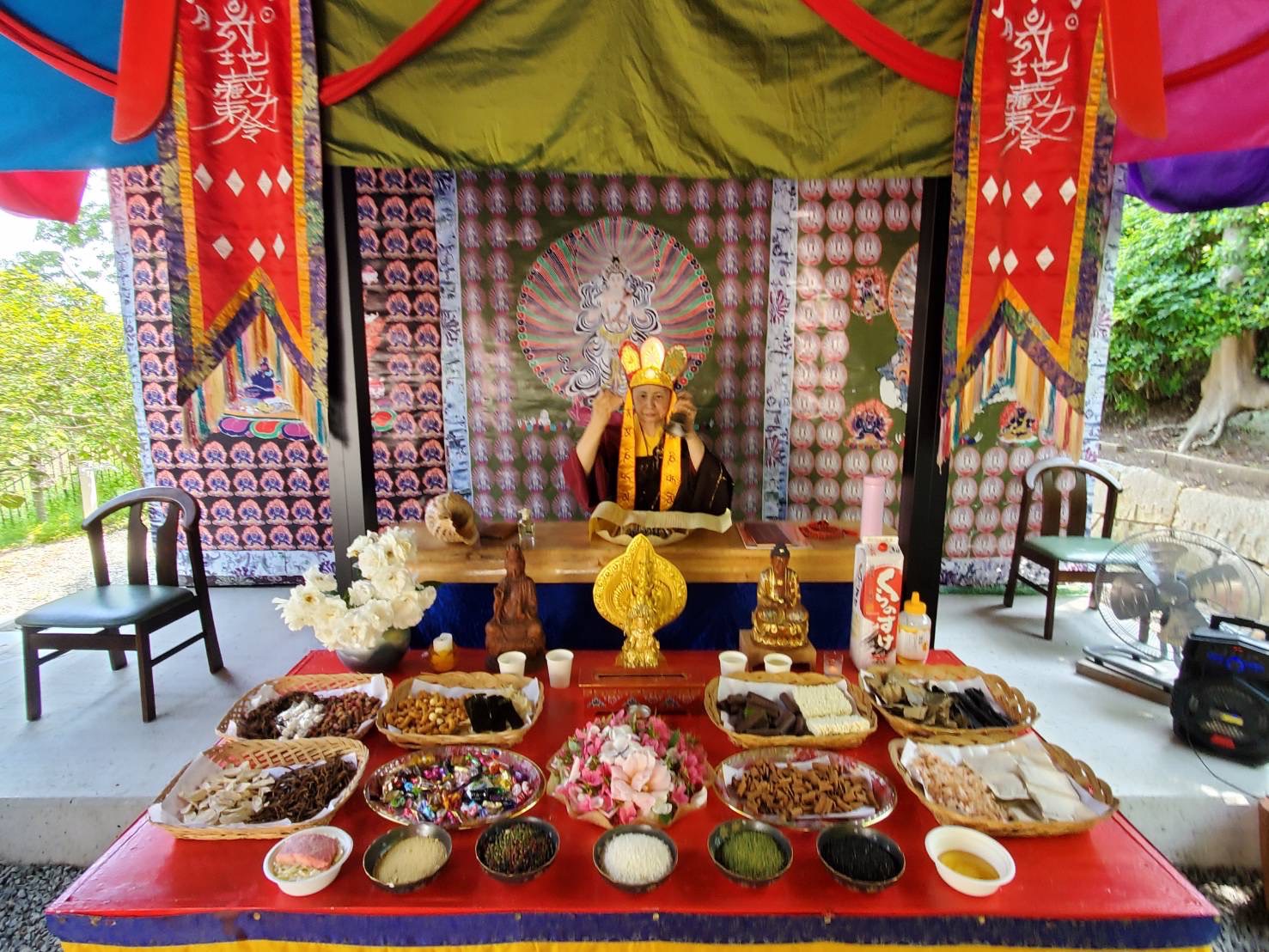 釋蓮花靜香上師於2024年5月26日在日本住吉雷藏寺主壇專壇「請佛住世瑤池金母護摩」,迴向師佛: