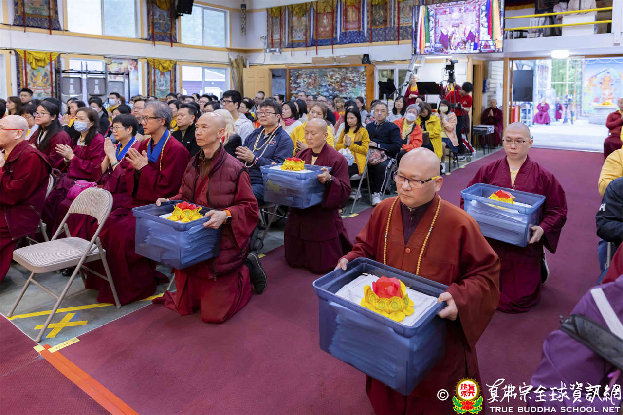 法會最後,法王移駕到Zoom前與弟子們互動,弟子們誠摯地感恩法王開示,並傾訴心中的感恩與敬意,法王慈悲賜授「文殊師利菩薩法」灌頂,法會圓滿結束。