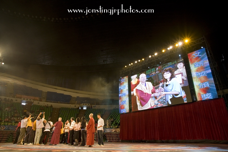 簡述:2008年5月3日時輪金剛盾大法會後感恩晚宴,盧師尊頒獎給當時 《燃燈雜誌》與《真佛報》合辦的第二屆文薪獎 得主。能從師尊手中親自得到獎杯真是畢生的榮幸!