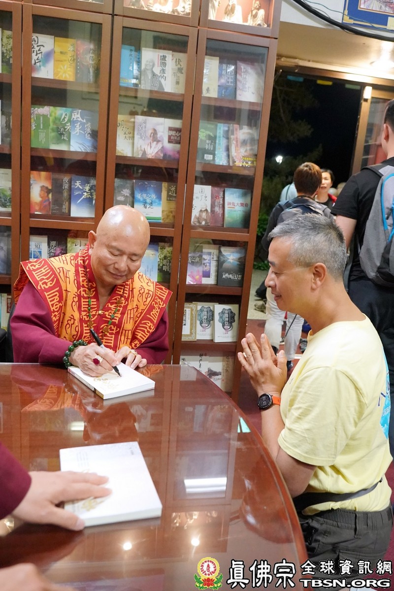 開示結束後,聖尊為大眾賜授皈依灌頂、加持大悲咒水和佛像開光。聖尊還特地為大家簽第266冊新書「黃金的句子」,這本書裡全都是珍貴的金句,同門火速搶購,人人如獲至寶般,祈請聖尊簽名加持。臨行前,聖尊為大家摩頂加持,為這法喜充滿、法味縈繞不絕的週六夜晚,畫上了完美的句點。