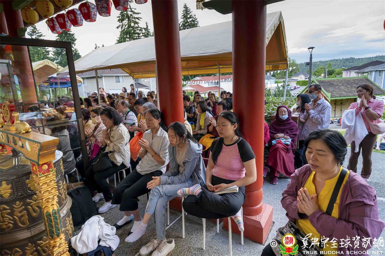 持咒誦經、稱念佛號(師尊現場唱誦阿彌陀佛佛號),自身融入於唱誦的聲音,就能夠把心靈清淨,因為嘴巴唱唸的同時,身、心、口三者合一。《阿彌陀經》中有記載要往生佛國的條件,第一是不能少善根、第二是要一心不亂的唸佛,也就是身口意合一的唸佛,這才是真正的唸佛。
