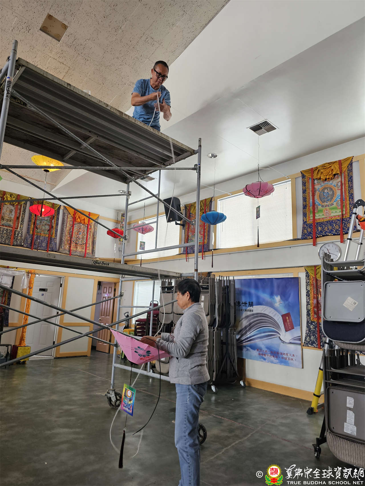 本次由宗委會策畫帶領世界各道場舉辦「聖壽跨80、文集越300」慶典圓滿舉行,但仍有許多需要改進之處,故首個議題便是佛誕慶典的檢討。慶典總策畫蓮訶上師先說道,非常感謝來自新加坡圓證堂蓮花玉笑助教及蓮花國榮、蓮花然勝、蓮花伃嵐等四位義工,於佛誕前二週便抵達西城,大力的協助佈置場地。