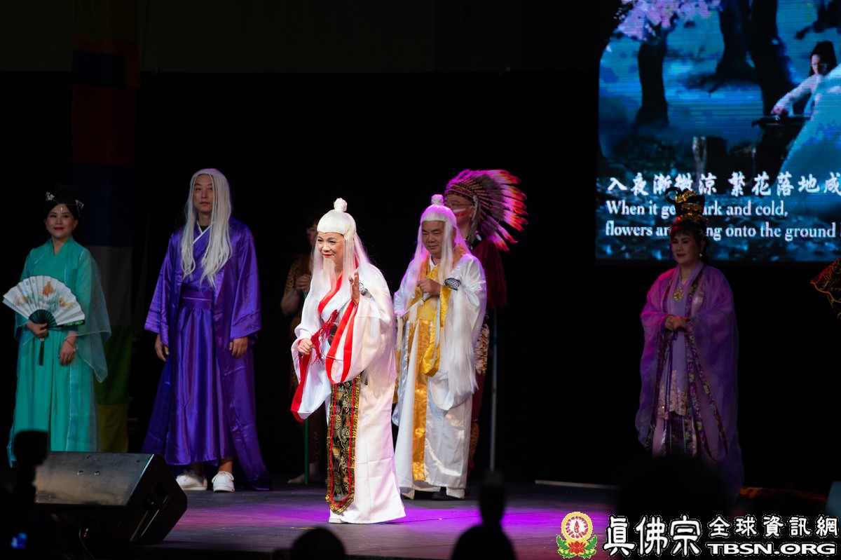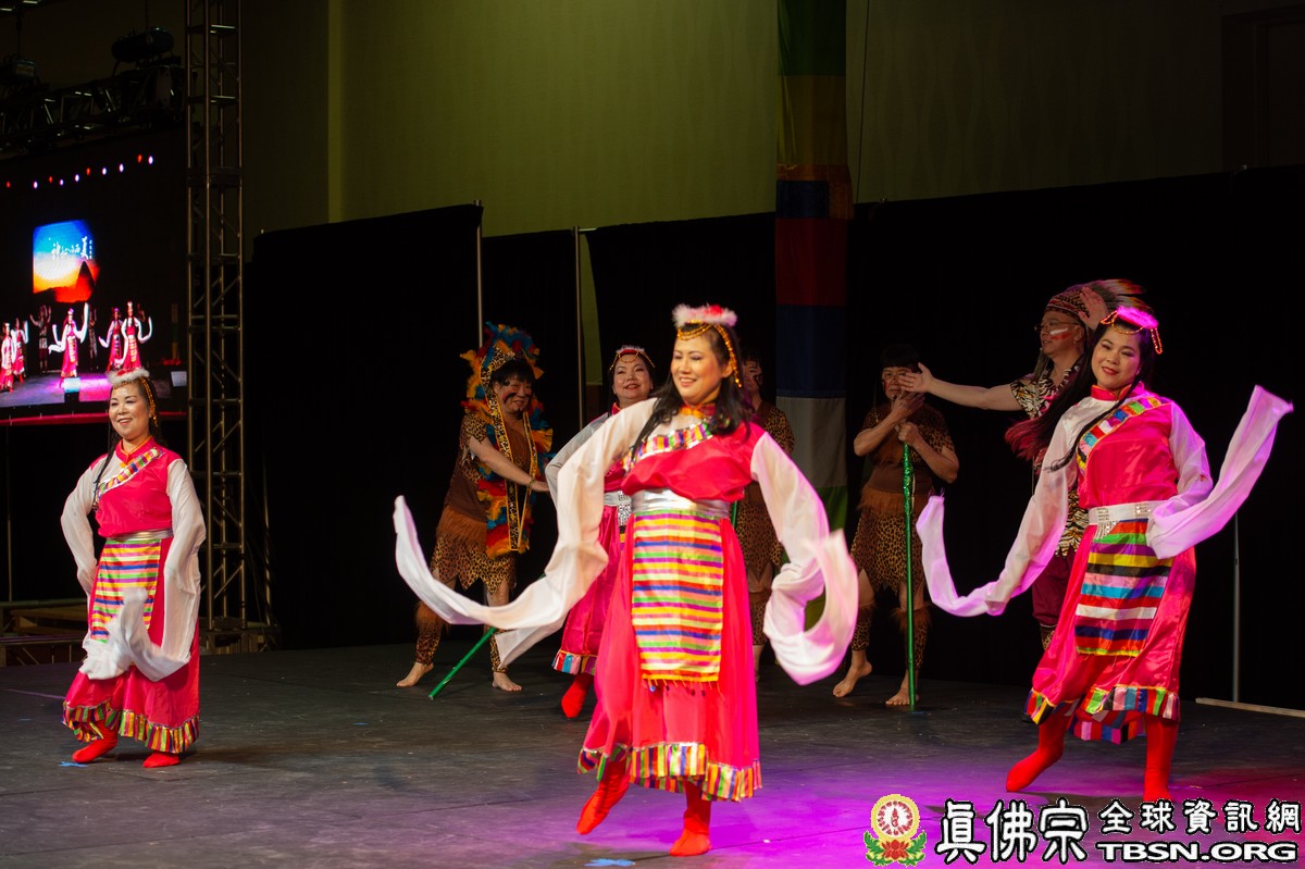 當晚除了專業歌舞表演連場,真佛宗代表有天音雅樂歌詠和師母一起呈獻的陽光舞供團舞蹈,並有由蓮訶上師「銜導主演」的笑話劇,劇中引用了不少師尊開示時說過的笑話,可見的確有做足功課,至少好好聽過師尊開示(的笑話)(一笑),大家想起師尊說過的句子,自然會心大笑,其樂融融。