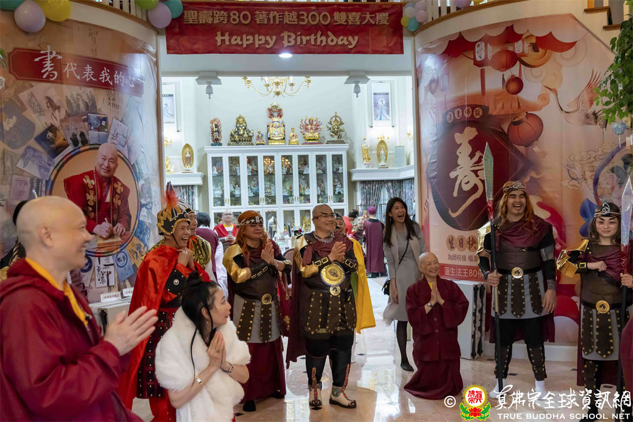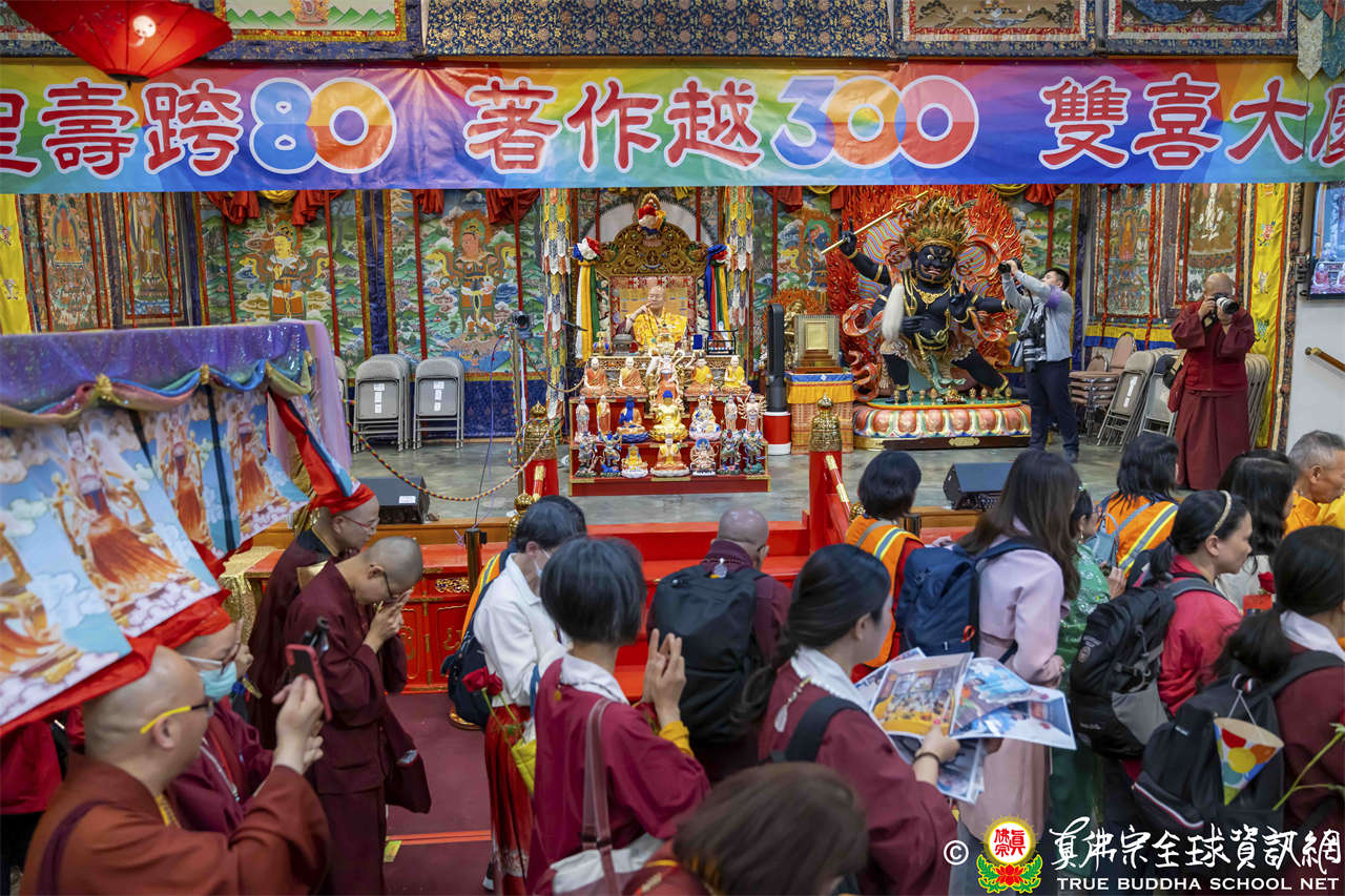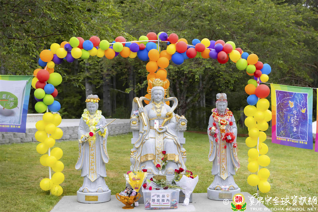 2024年6月23日星期日,下午三時,彩虹雷藏寺隆重舉行「瑤池金母護摩大法會」,來自世界各地的真佛弟子,湧入彩虹雷藏寺,大家都穿上紅色的衣服,手上拿著紅玫瑰花,隨身還帶著一本師尊文集,臉上都是笑容。連保安組開會都交代,今天慶祝師尊佛誕,執行任務要寬容一點。