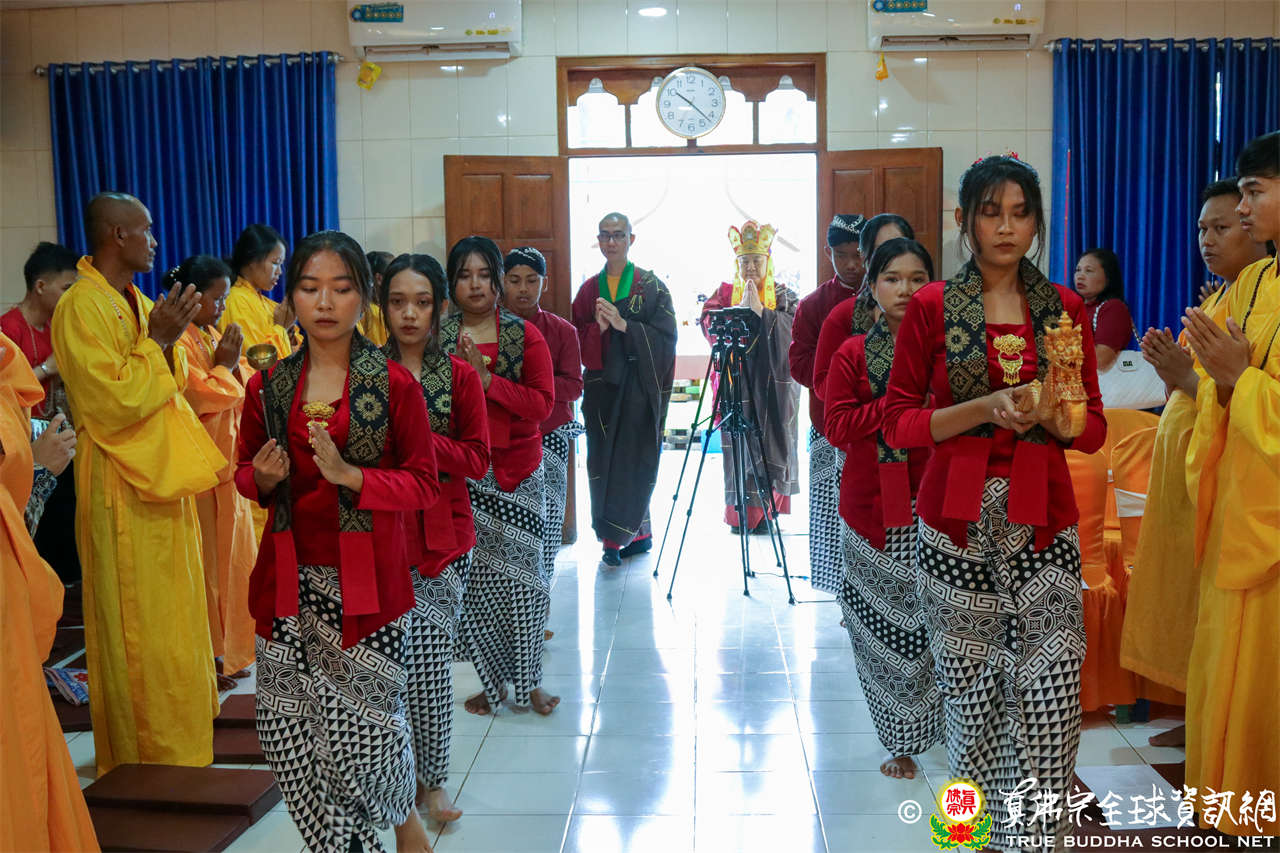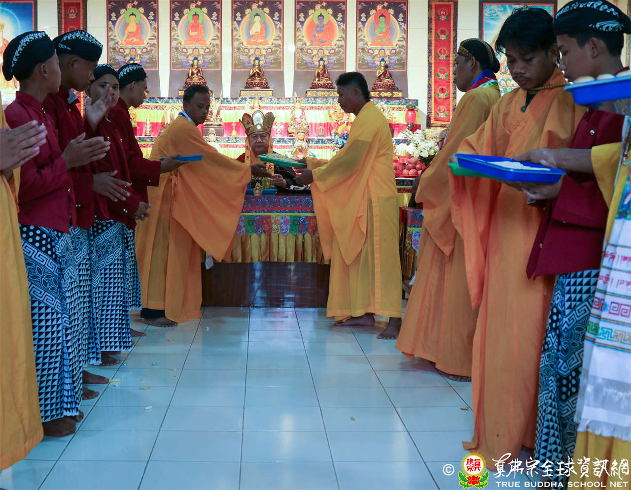 法會開始由慈藏雷藏寺青年組的迎師隊恭迎上師及教授師入壇場。迎師組全都穿著爪哇的傳統民族服飾,非常亮麗。法會疏文是以爪哇語宣讀,咒音是以梵文唱誦,同門都虔誠地唱誦祈禱,並進入專一的境界。