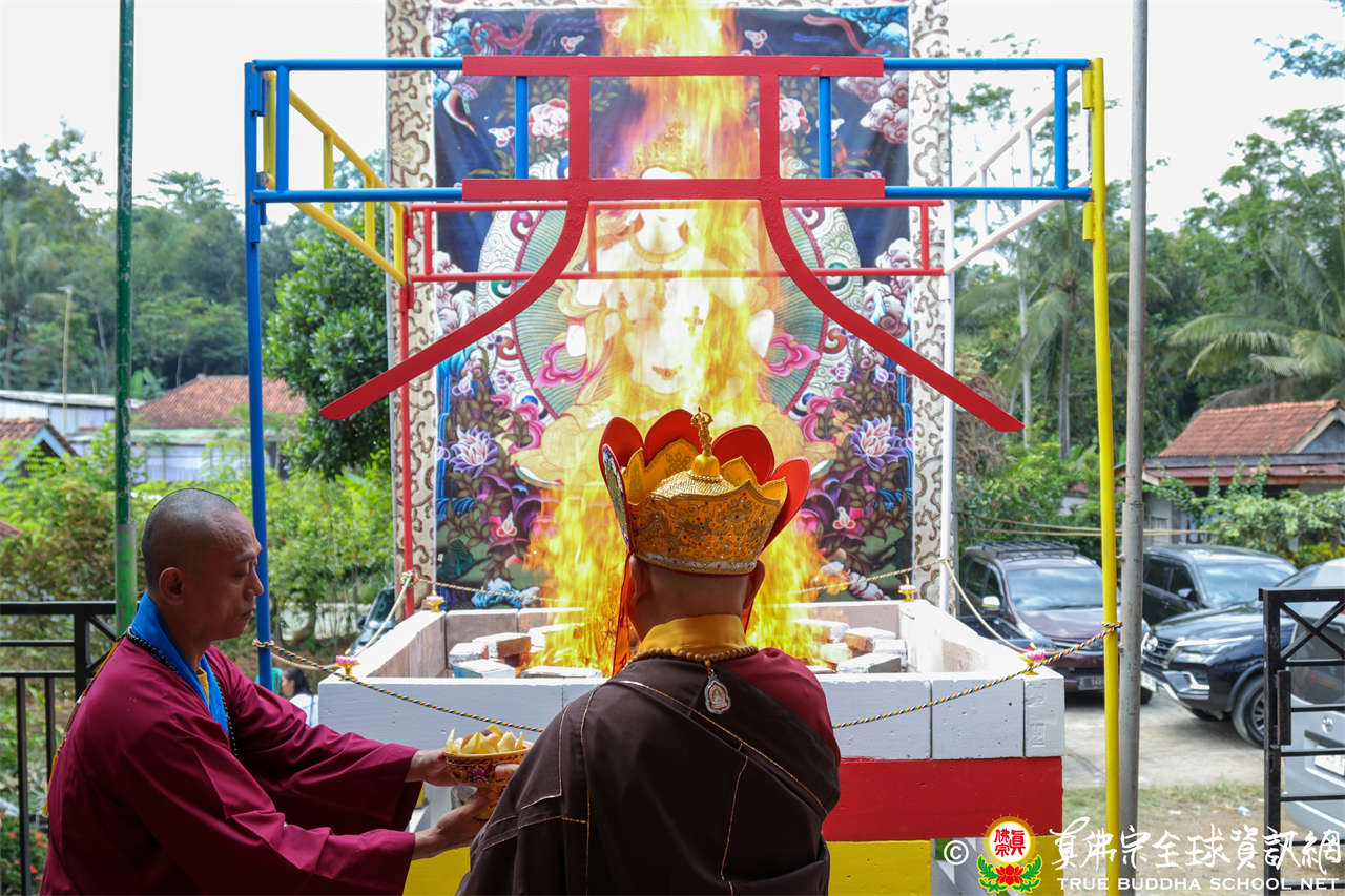 中爪哇Cilacap, 真佛宗密教總協會屬下的真佛弟子,假座慈藏雷藏寺舉辦金剛薩埵祈福超度護摩大法會。恭請真佛宗密教總協會僧團主席釋蓮飛上師主壇。這是一場非常莊嚴殊勝又充滿意義的法會。