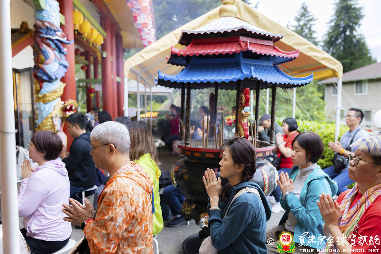 2024年6月29日,西雅圖雷藏寺大雄寶殿裡,蓮生活佛盧勝彥帶領大家一起同修蓮華生大士本尊法。同修後,聖尊祈請銅色山蓮華生大士加持大眾如意吉祥、敬師、重法、實修,並祈請加持病毒退散、瘟疫退散、地水火風災難退散、刀兵劫退散、一切逆緣退散、惡念退散。