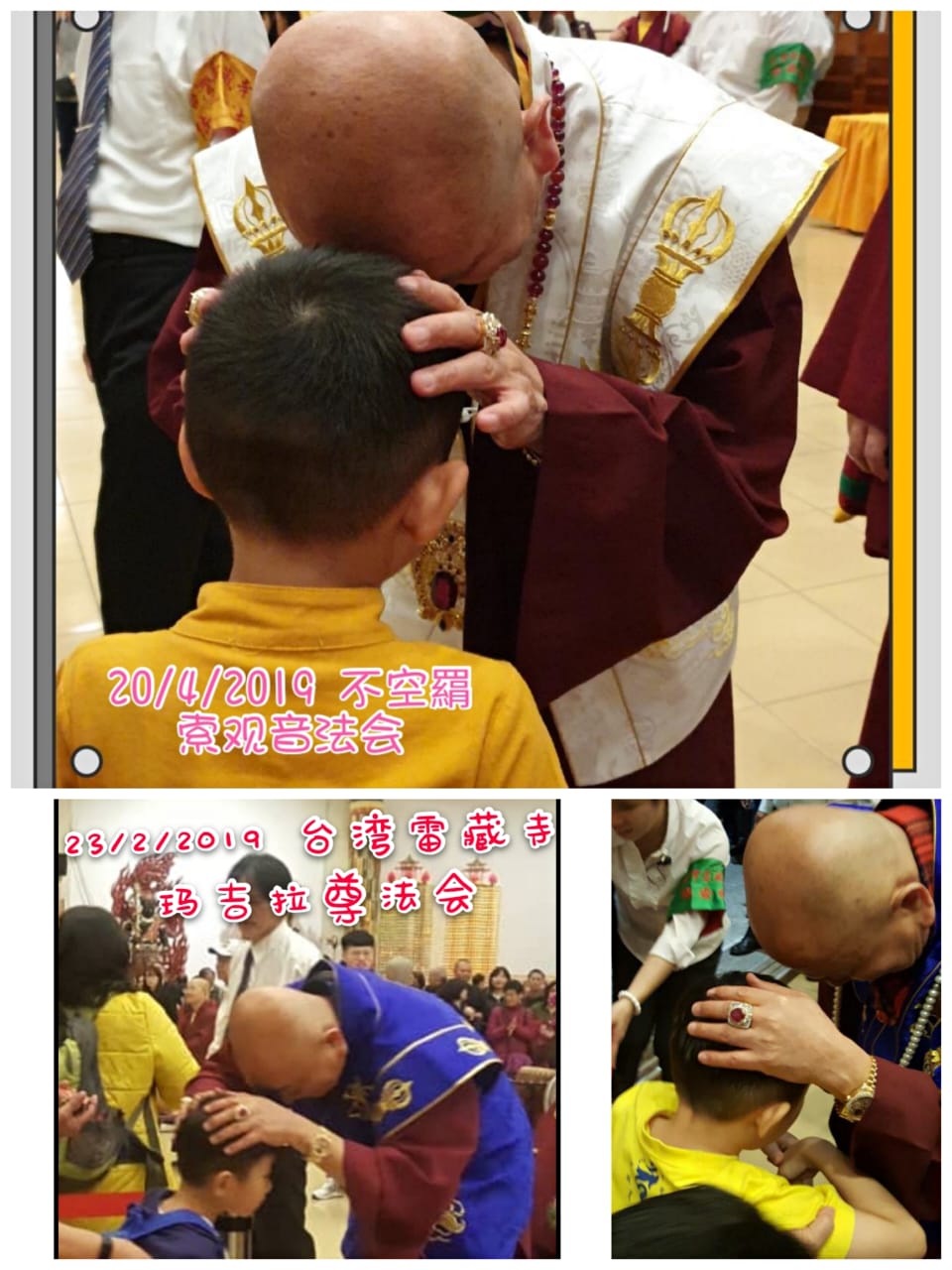 侯健(蓮花一健)今年12歲,出生於2012年,次年未滿周歲第一次踏出國門(馬來西亞)遠赴台灣親見根本傳承上師參與他皈依后第一場護摩法會(金剛薩埵)與佛聚餐,餐會師尊親吻加持之時毫不陌生,小朋友太幸福了。