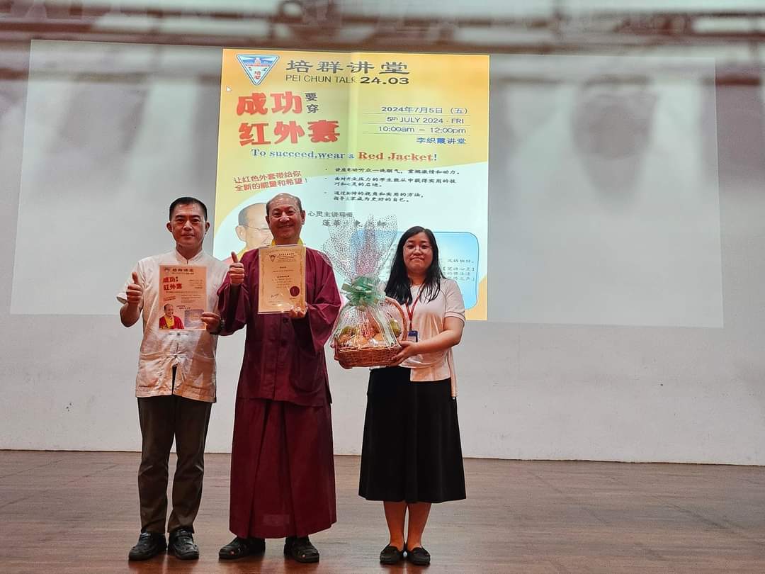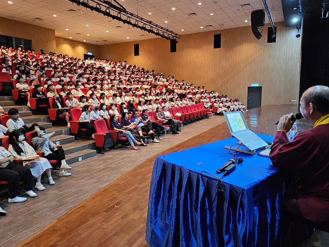 2024年7月5日早上9點,馬來西亞真佛宗傳律雷藏寺安排蓮花少東上師在馬來西亞笨珍培群獨立中學為約400名中學生講座。